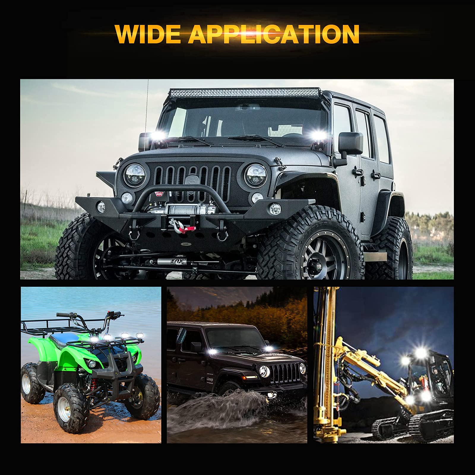 High Intensity 5050 Chip for Super Brightness. Compared with ordinary 3535 chip, our 4 Inch square pod light have 60W/Pair 5050 LED chips, equipped with 12D optical lens, can provide 6000lm spot beam and 6200k cool white light. Outstanding performance will light up everything you need to see!