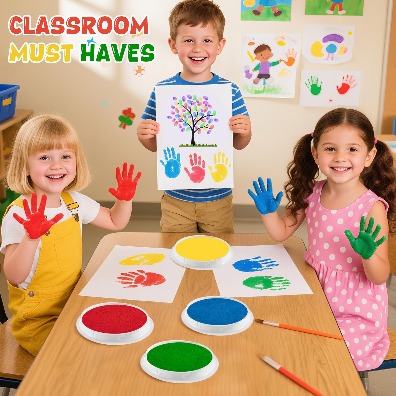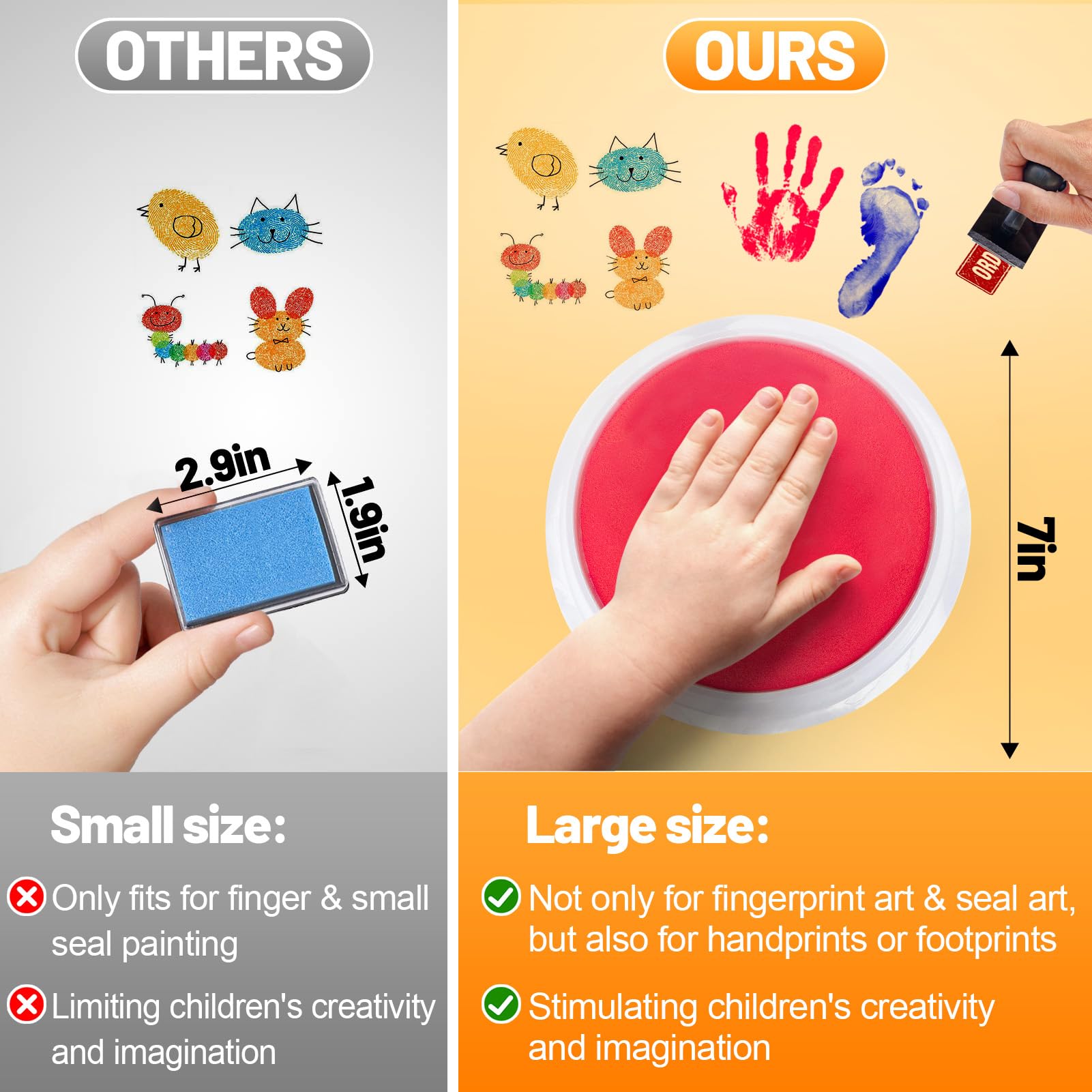 【Wide Applications】These color ink pads are great for kids doing crafts, projects, paintings, and other artworks. They are good gifts for your children to draw with their hands or fingers to cultivate their imagination, creation, and sentiment. In addition, compared with ordinary small square ink pads, ours with larger size and wider applications, they are also perfect for use on children's hands or footprints, which is memorable and interesting.