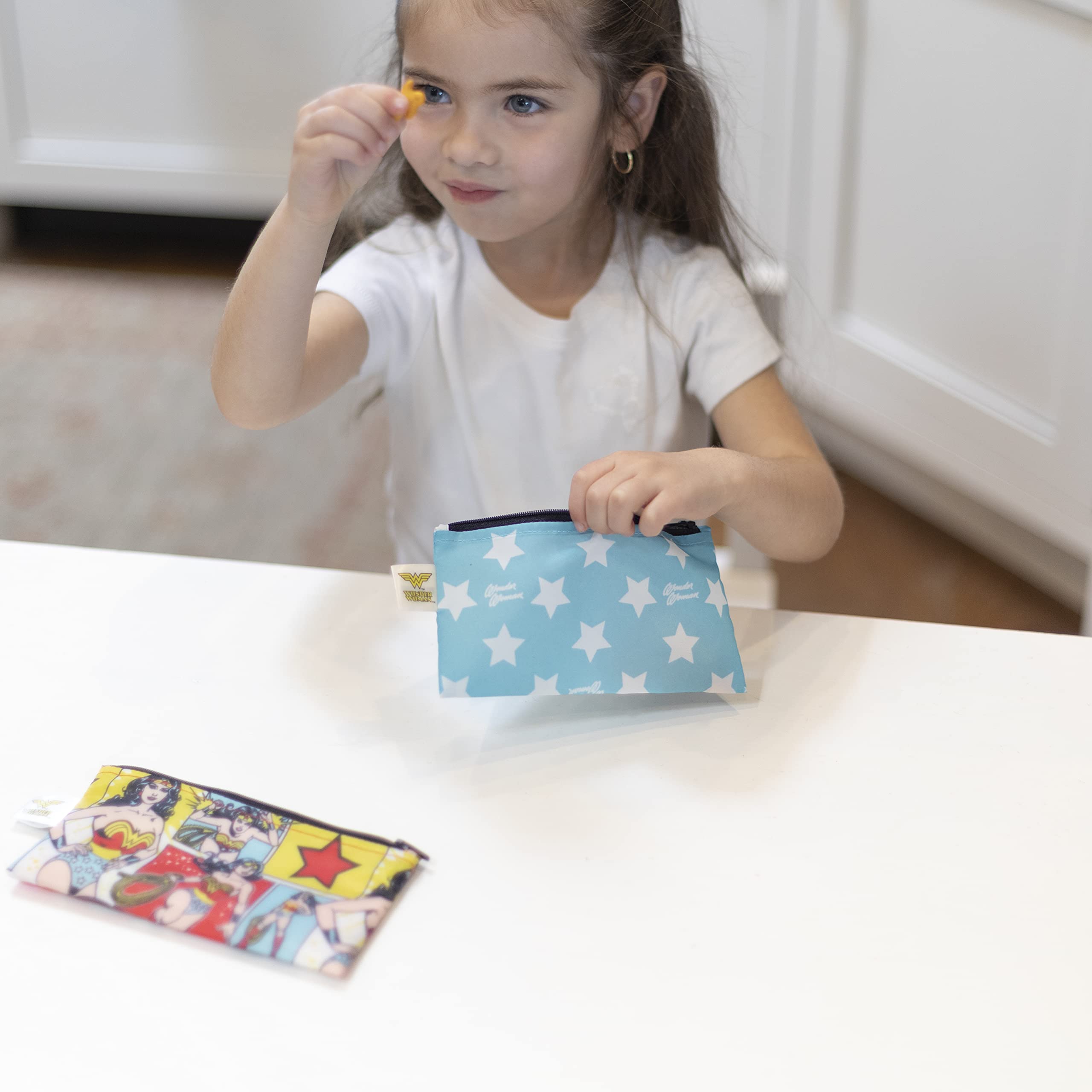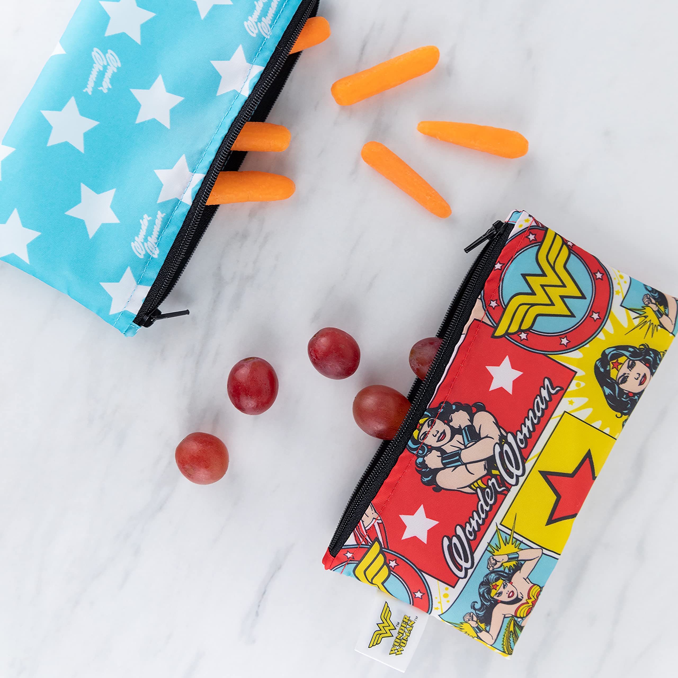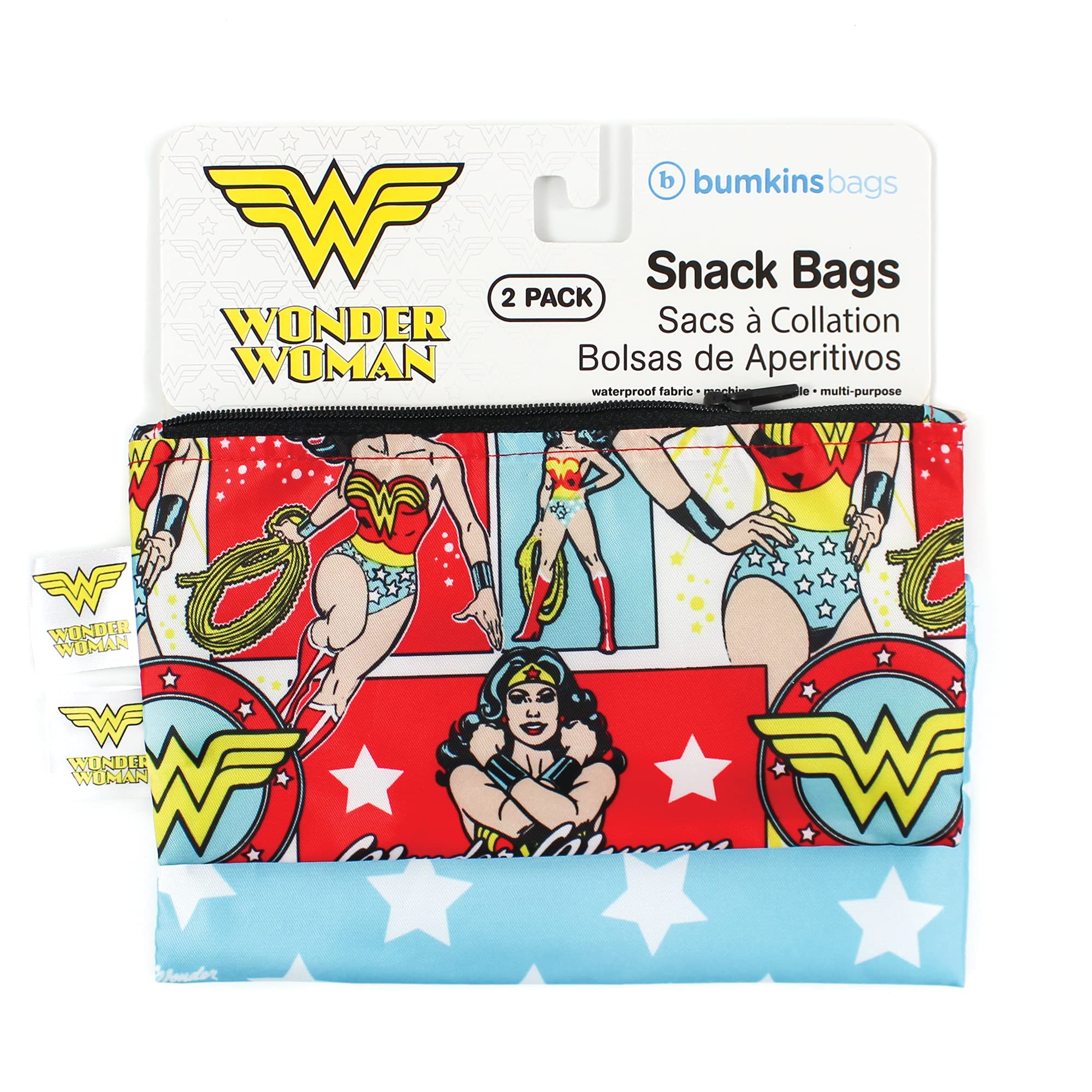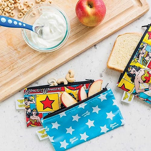 REUSE AND REDUCE WASTE – Bumkins reusable cloth snack bags are made from our original waterproof fabric with zippered closure; not just for lunch, they make excellent organizers for storage and travel; stash inside purse, diaper bag, or travel bag