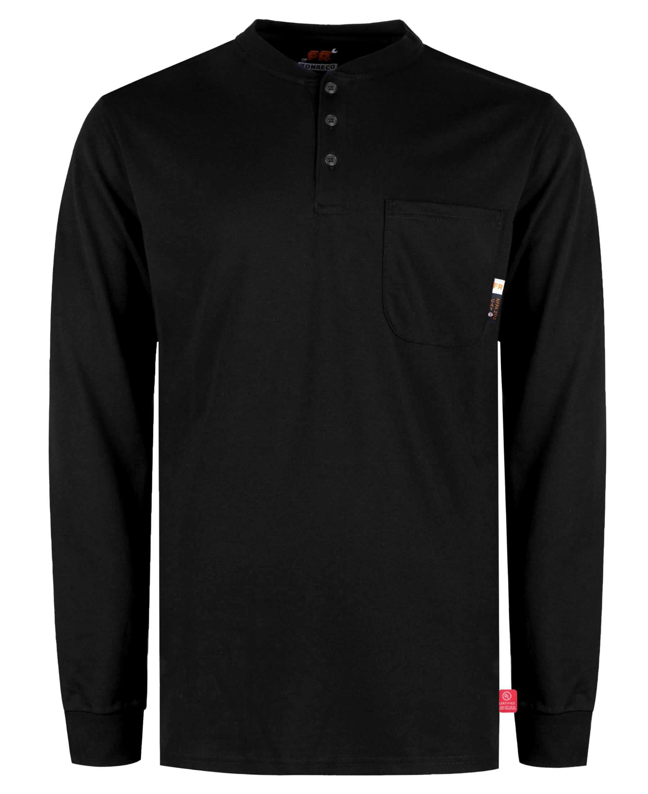 FR MATRIALS:5.5OZ cotton knit FR treated,FR buttons,FR sewing threads!Clear FR tag on arms and bottom front.