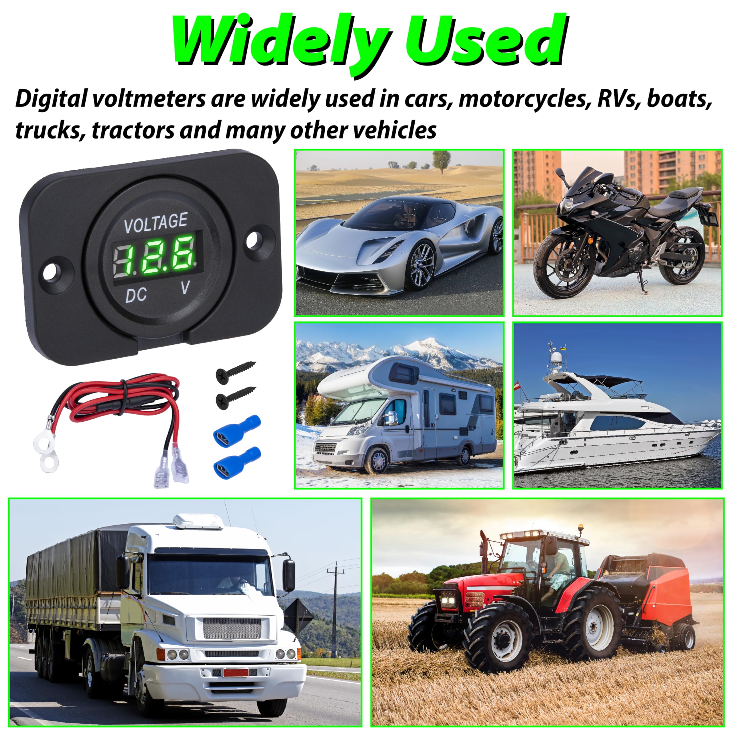 Widely Used: Suitable for 12V and 24V DC systems, this digital voltmeter is widely compatible with cars, motorcycles, RVs, SUVs, crossovers, ATVs, UTVs, boats, trucks, tractors, and many other vehicles, ensuring stable operation in various environments