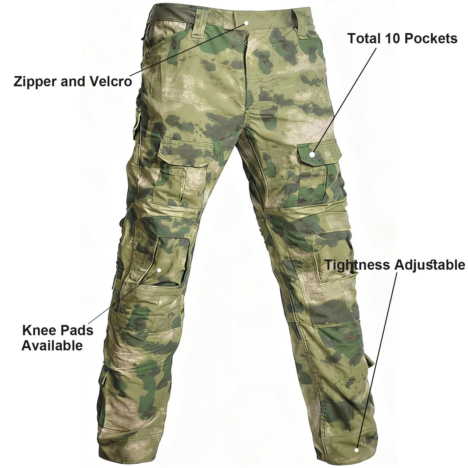 【Package Contains】Tactical Como Pants + Shirt + Cap + Gloves + Balaclava Mask. A set of airsoft gear.