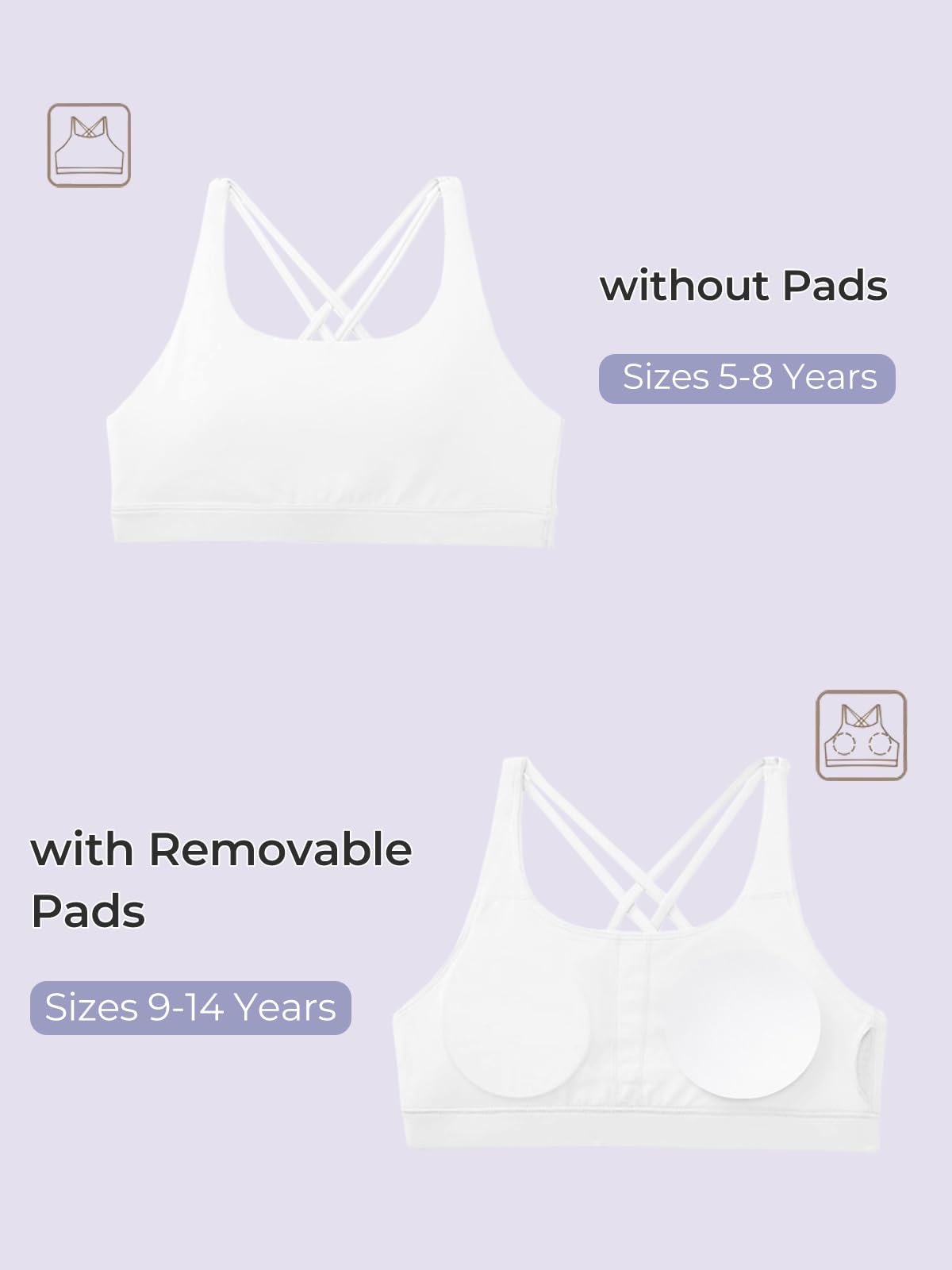 Removable Pads(9-14 Years): Sizes 9-14 years come with removable pads, providing adjustable comfort and support as your child grows, ensuring they stay comfortable during sports, dance, or everyday activities
