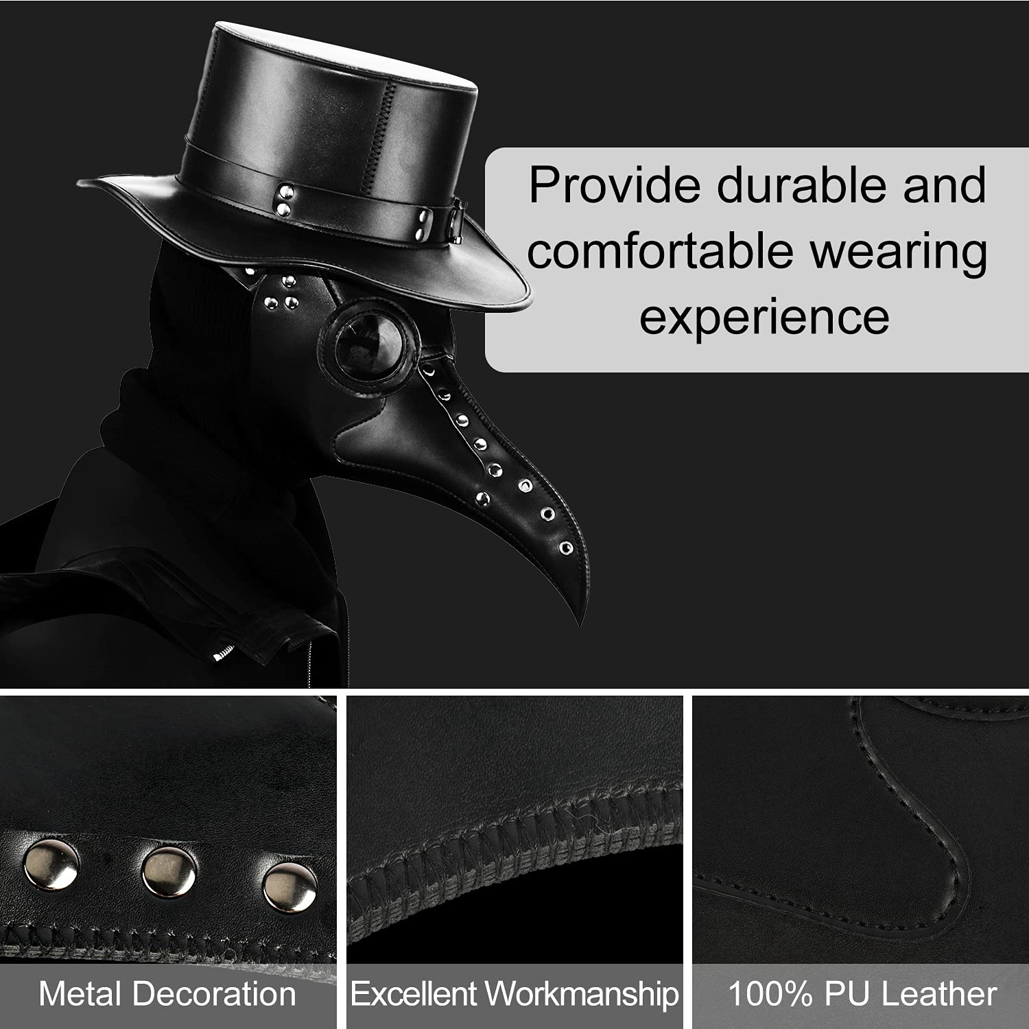 What You Get - 1 pack black PU leather plague doctor mask and provide you with a 30-day refund or replacement. If you have any questions, please contact us via email and we will solve it for you within 24 hours.