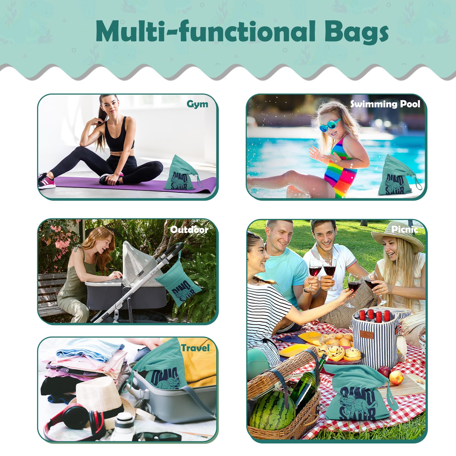 Multi-functional Bags-A truly wonderful bag that allows you to carry your wet and dry items in the same bag. Carry all your items in one bag while keeping your dry items dry and your wet or soiled items separate. Truly an all in one bag! They can be used as diaper wet dry bags,travel bags,storage bags,cosmetic bags,handbags,wash bag,organizer bags.