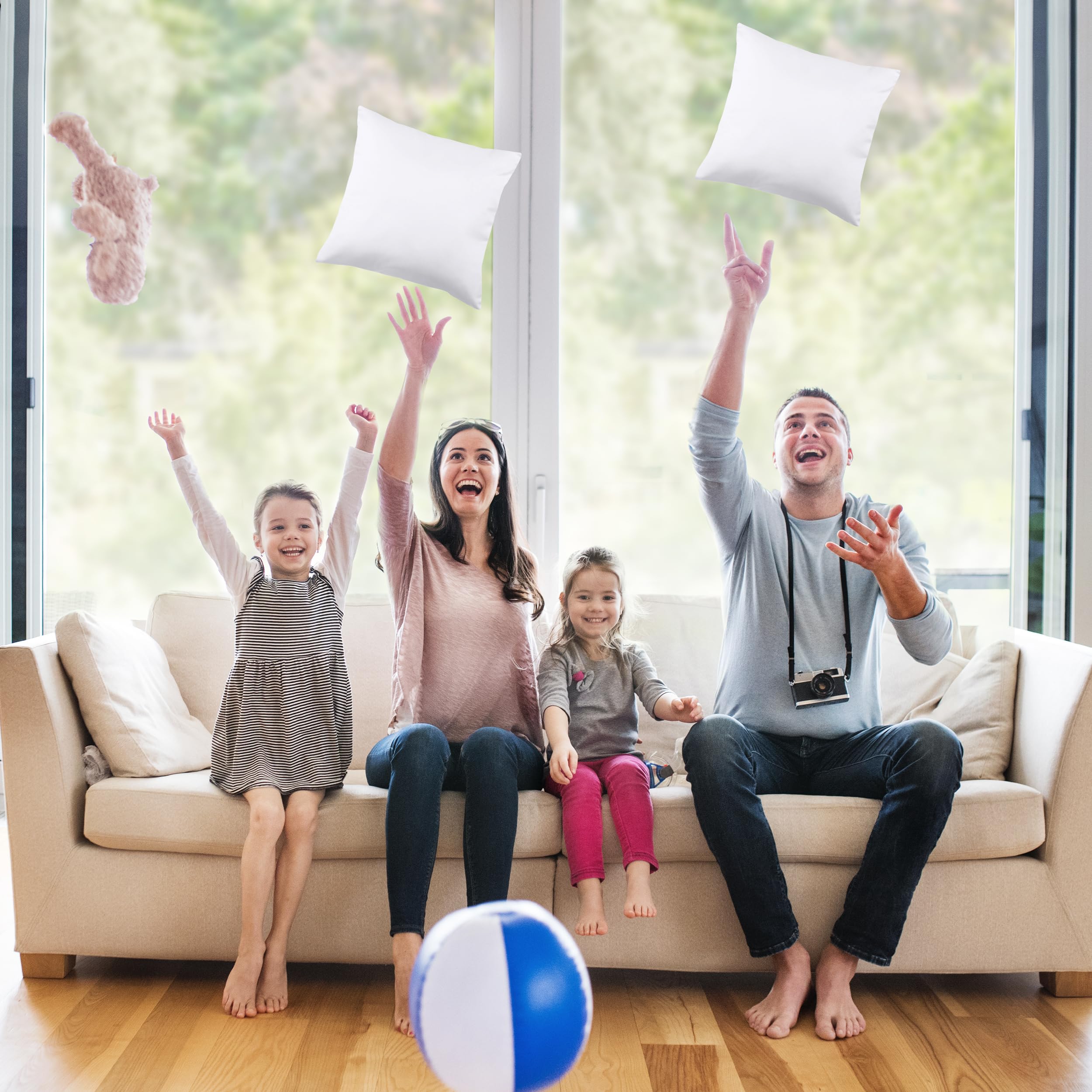 12 x 12 Pillow Inserts (Set of 2) – Offers a standard fit for 12x12 pillow covers and protectors. For a fuller, fluffed-up look, use them with covers one size smaller. Soft, fluffy couch pillows for living room, bedroom, or patio décor.