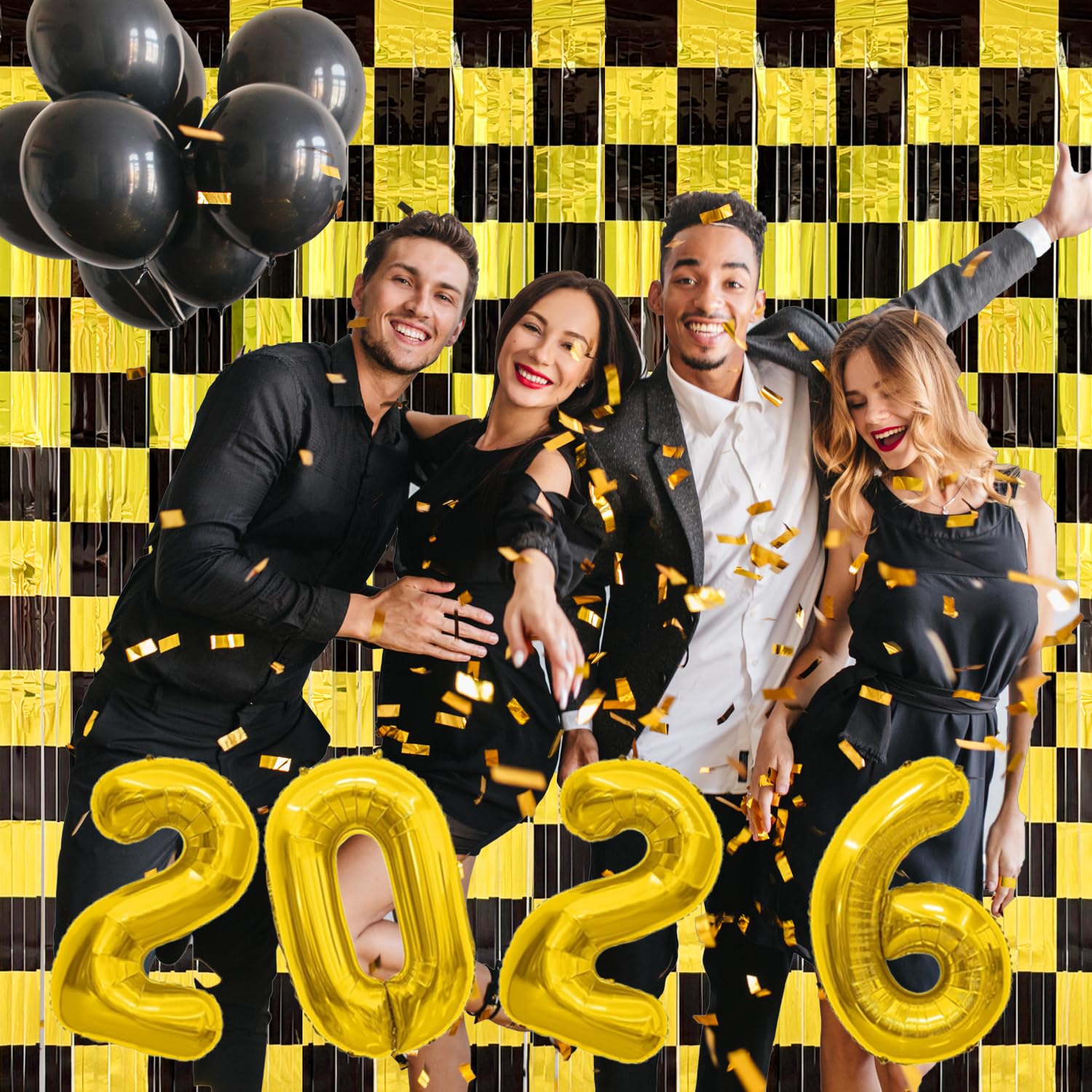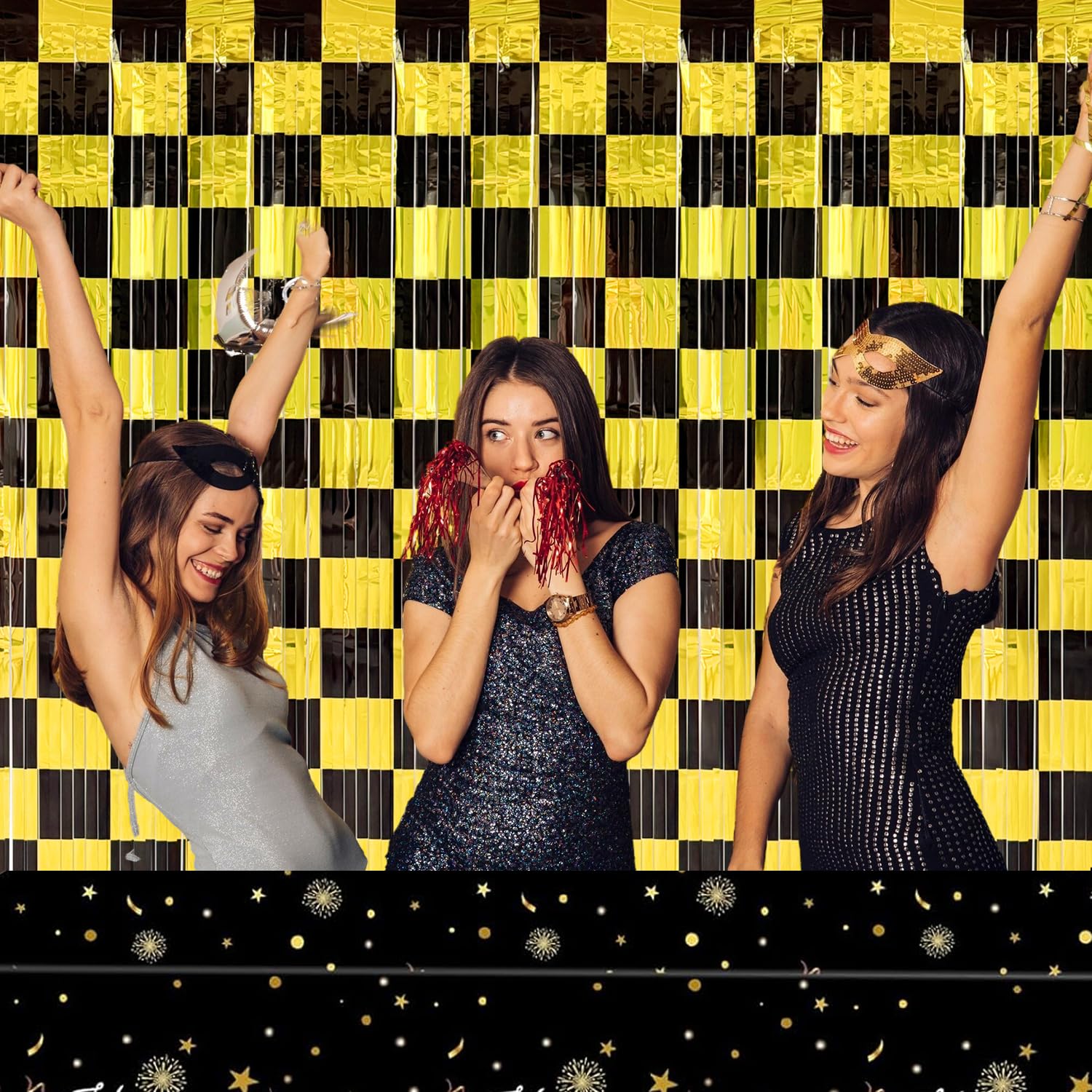 Black and Gold Party Decorations - Transform your birthday or New Year’s Eve celebration into a stylish, memorable event with these black and gold foil fringe curtains. Perfect for adding a touch of glam to any occasion!