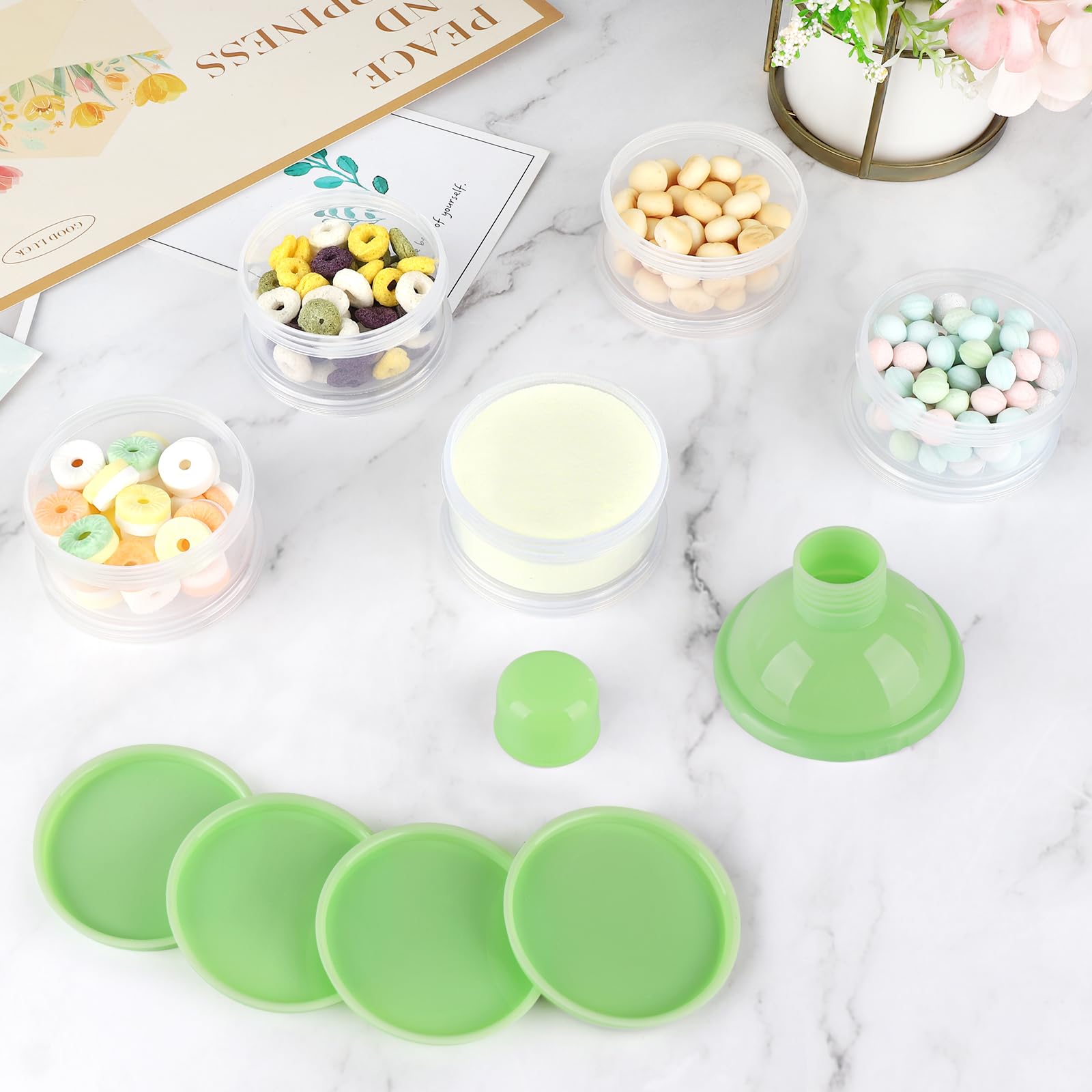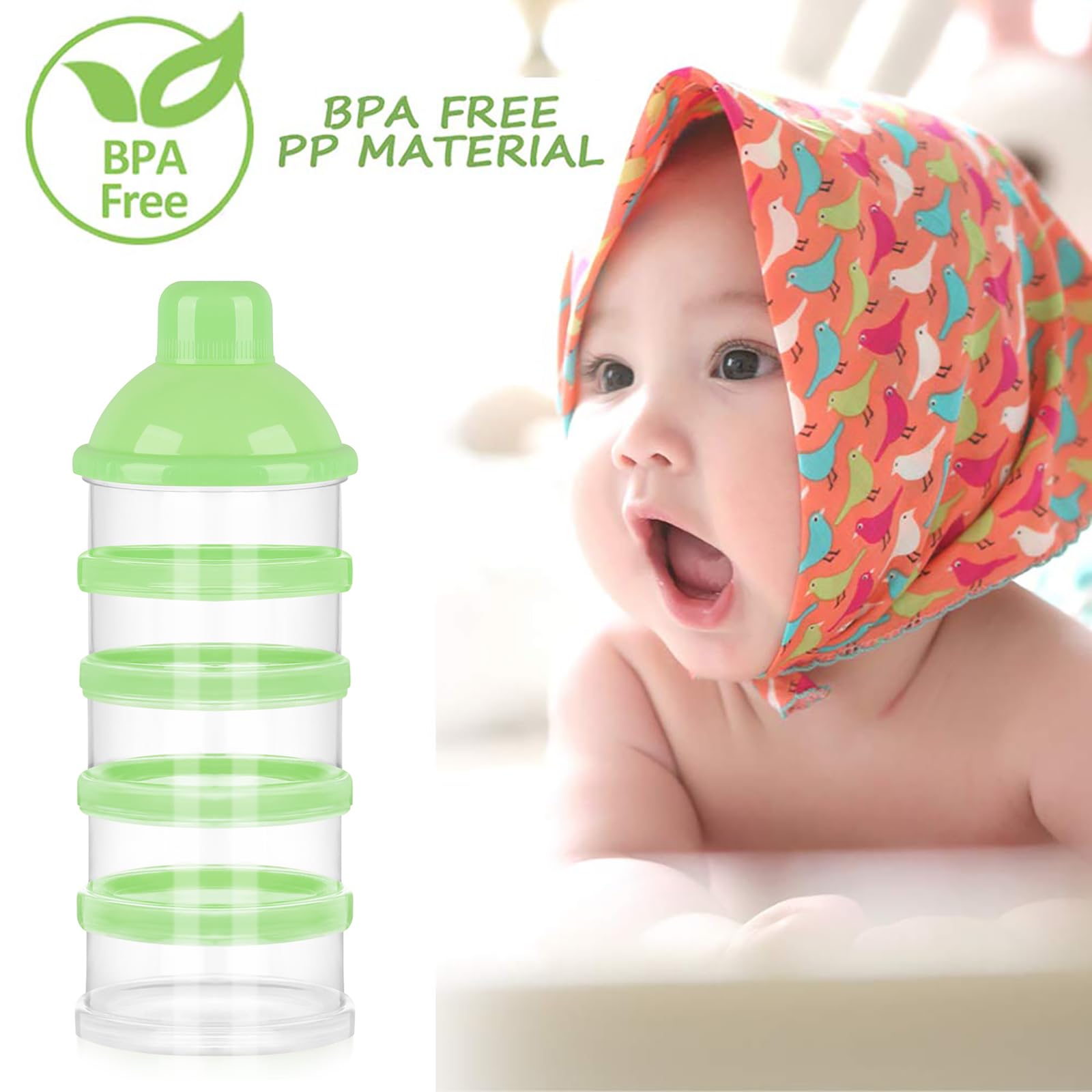 Capacity - 5 layers design. You can put quantity of baby formula on each layer. A total of 5 layers of pre measured milk powder or food can be placed. Very pratical formula container for on the go.