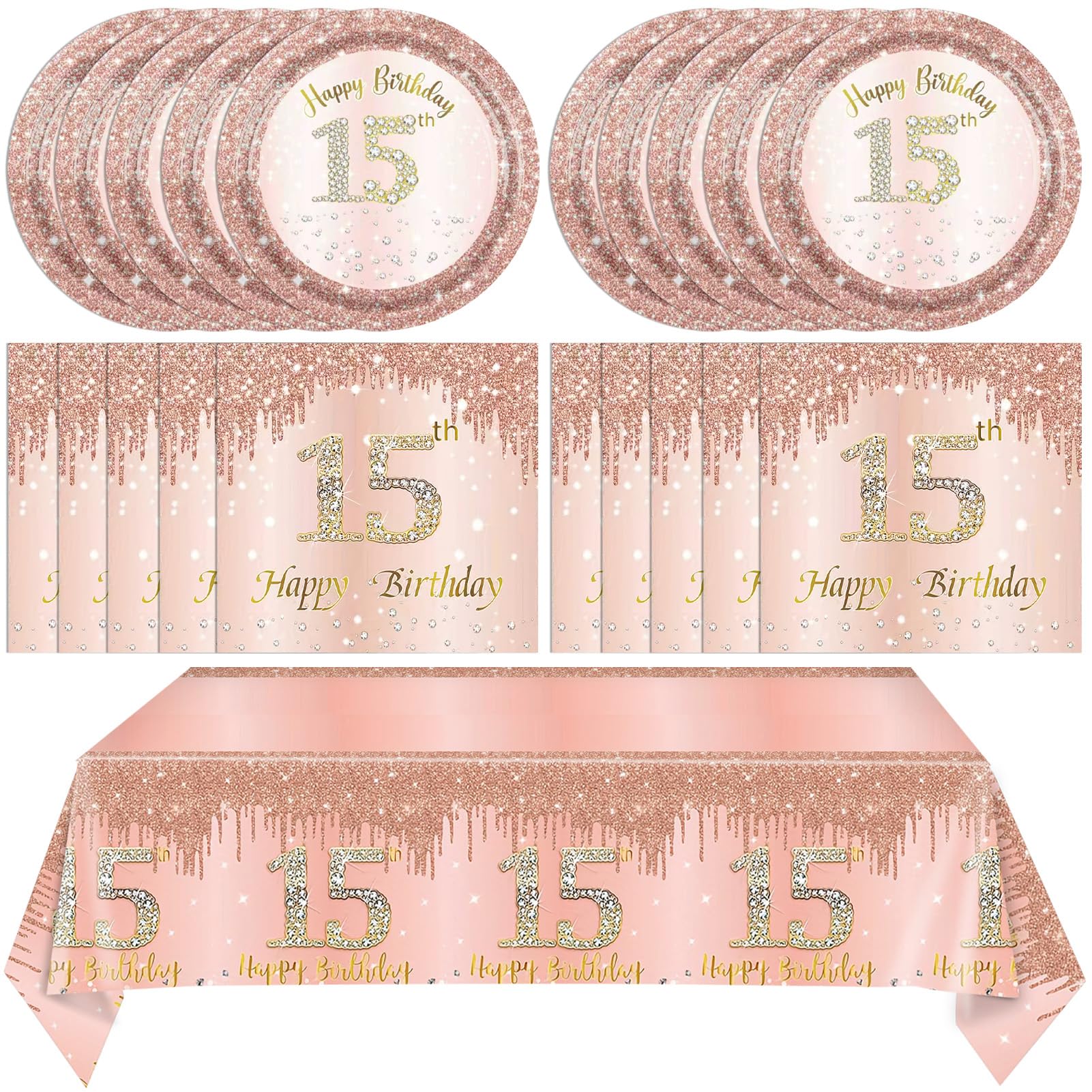 Ideal Birthday Party Complement: Our 15th birthday theme party packs are an ideal complement to your happy 15th birthday decorations girl. They can fit well with your other 15 birthday decorations such as 15th birthday cake topper,happy 15th birthday banner,15 balloons number,15 birthday card,15th birthday sash and rose gold party backdrops.