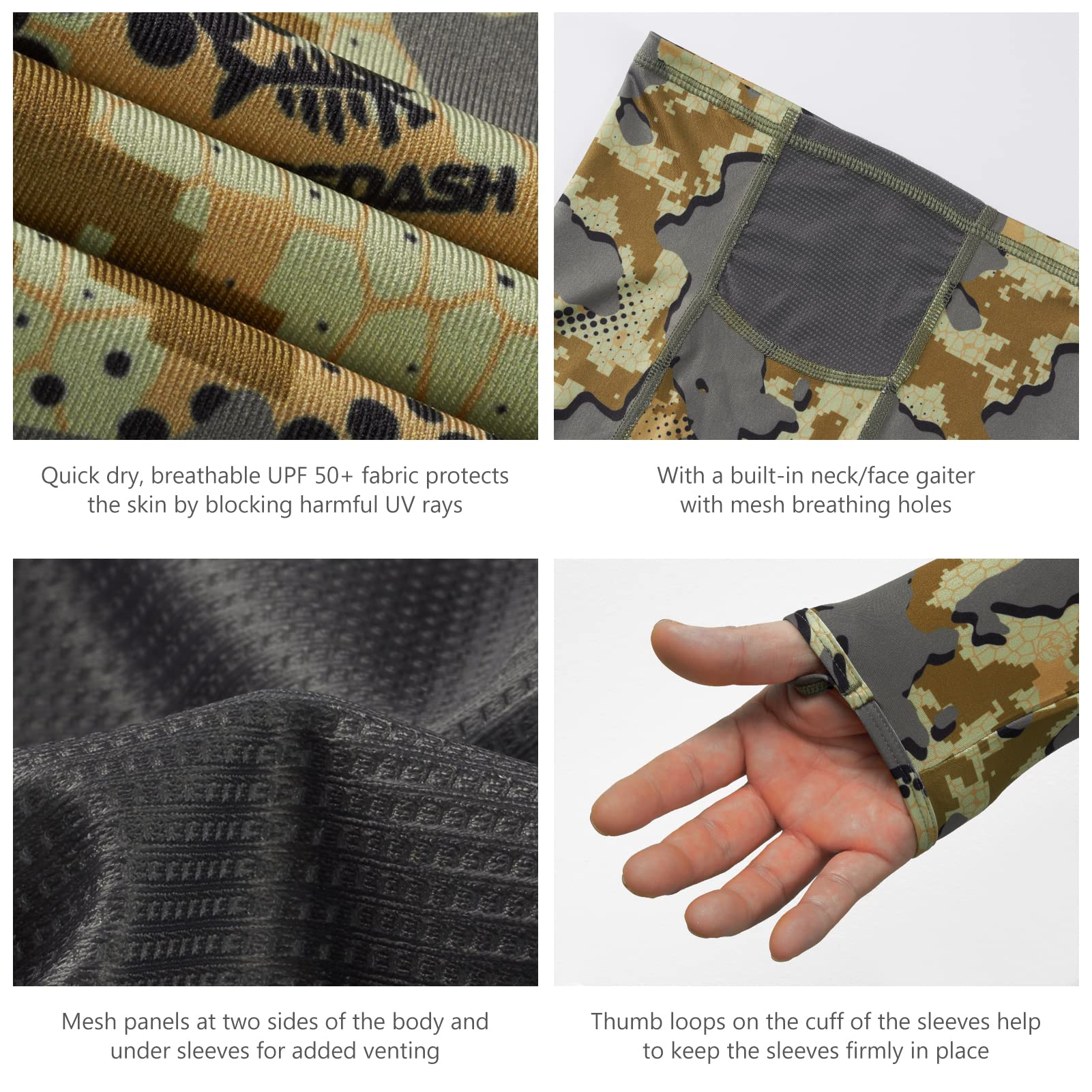 With a built-in hood and neck gaiter - the neck gaiter can be worn as a mask and it is soft and breathable, enhanced with mesh breathing holes to help keep your sunglasses clear without fogging up; Fully protects your face and neck from the harsh sun rays, wind, dust and bugs all day long and also helps keep your head, face and neck warm while in cold days