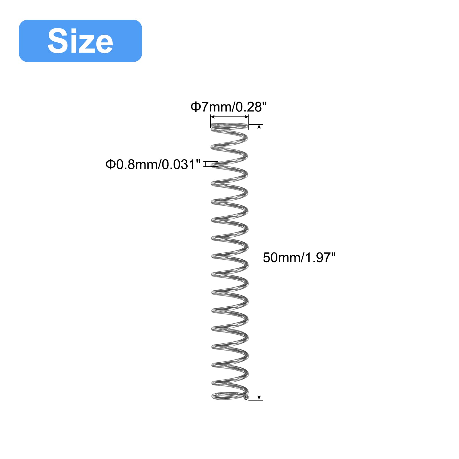 [Specifications] - Outer Diameter: 7mm / 0.28"; Wire Diameter: 0.8mm / 0.031"; Total Height: 50mm / 1.97"; Material: 304 Stainless Steel; Color: Silver Tone