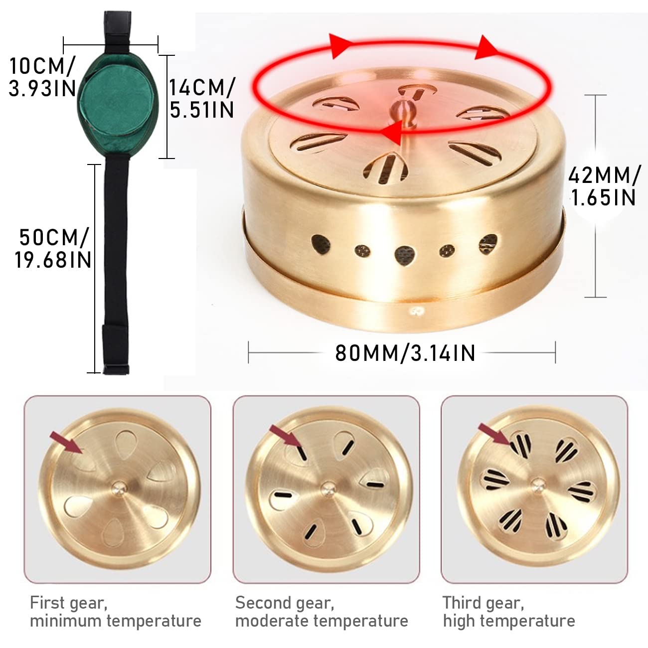【3 Adjustable Temperature Levels】Rotate the copper box lid to control the number of air holes to adjust the temperature. There are three adjustable temperature levels, which can be adjusted to the most comfortable temperature according to actual use. Regulates discomfort caused by menstrual cycle and dispels cold and dampness in the body