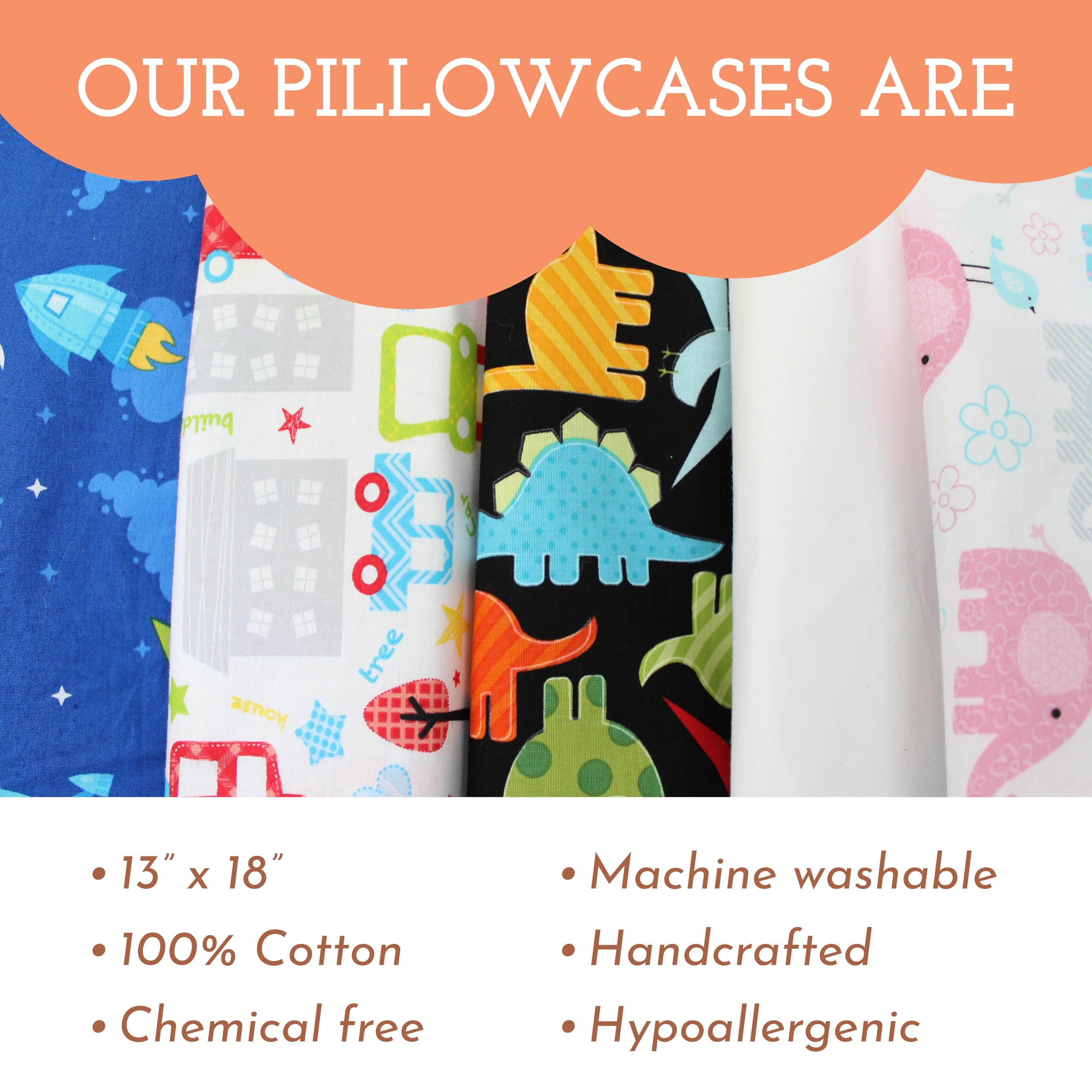 Convenient Design: Unlike other small pillow case and mini pillow cases designs, ours are made with an envelope enclosure. The pillowcase fits well and doesn't slide off the pillow insert. When it is time to freshen it up, you can easily remove it from your toddler pillow and throw it in the wash!