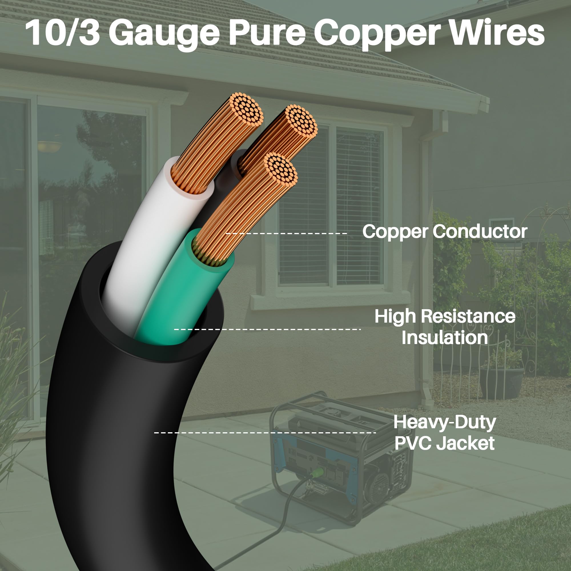 【Industrial-grade Material】: Featuring 10AWG/3C pure copper stranded wire, reinforced copper contacts minimize power loss, and low resistance/high conductivity can reduce heat. The SJTW outer jacket is weather-resistant, flame-retardant, and UV-resistant, making this 30 amp extension cord 3 prong ideal for demanding indoor and outdoor conditions.