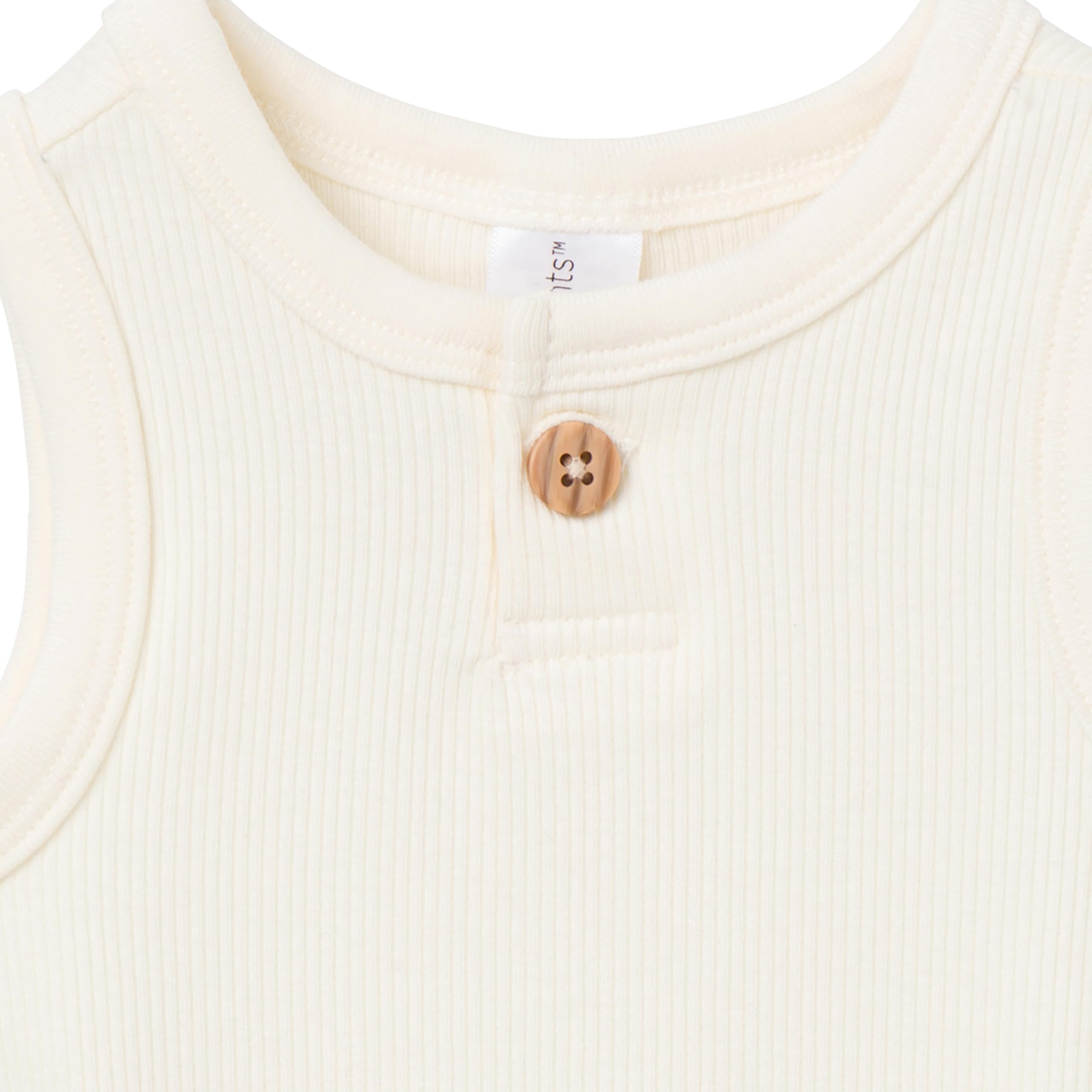 Description Get ready for fun in the sun with our baby bodysuit and shorts set! Designed for both style and comfort, this ensemble allows you to mix and match to create adorable sunny day outfits for your little one. The ribbed bodysuits offer an extra flexible fit, while the comfort-stretch material at the neckline, armholes, leg holes, and shorts waistband provides your baby with a flexible fit, keeping them free to move and play. With simple bodysuit snaps, dressing and diaper changes are quick and easy, allowing you to spend more time enjoying the outdoors with your little one. Add a touch of sunshine to your baby's wardrobe with this versatile baby outfit set.