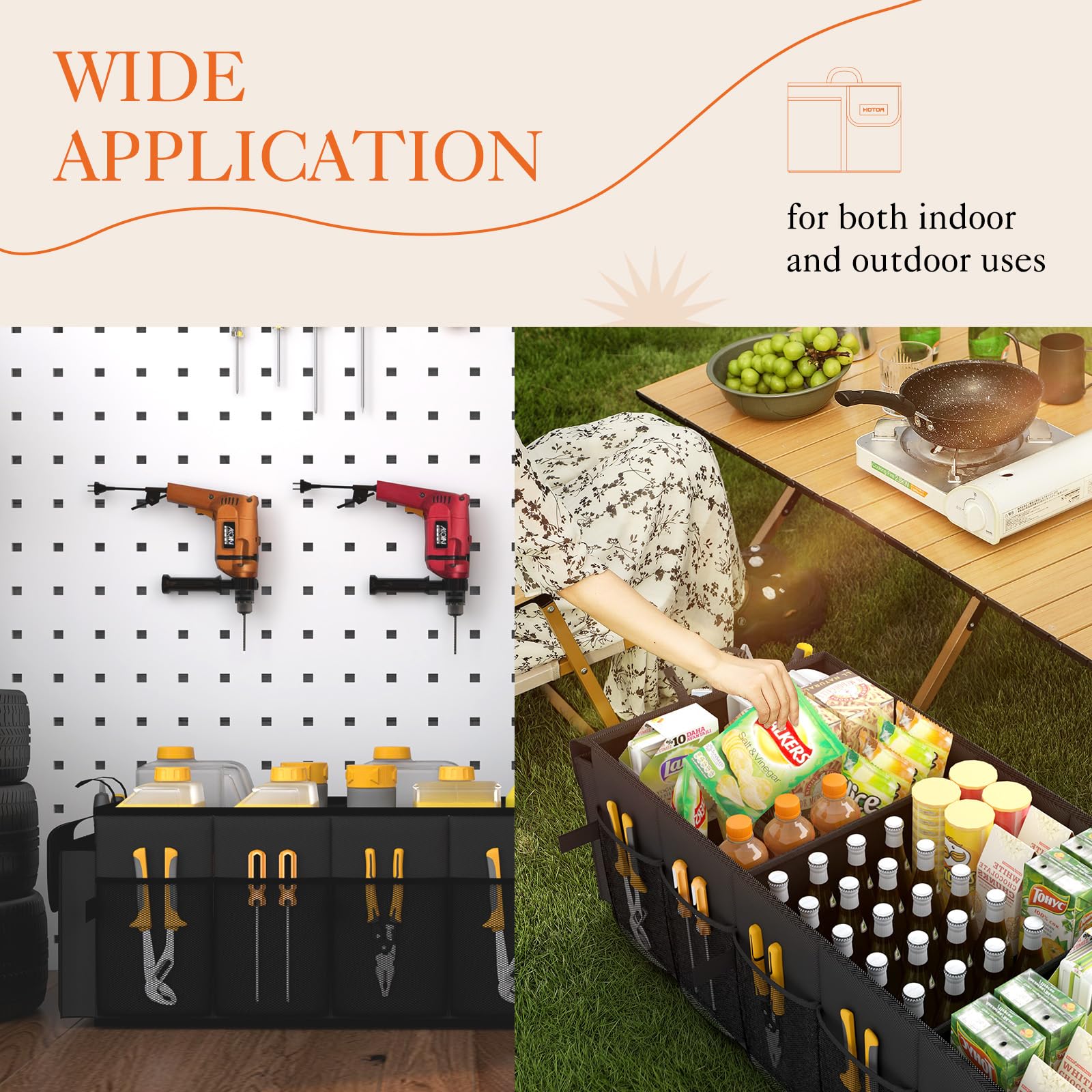 HARD-WEARING MATERIALS: Made of sturdy Oxford cloth with reinforced stitching on high-wear areas, this car organizer for trunk is built to last through heavy use. The thickened base panel and handles enable this product to bear over 60lb capacity.