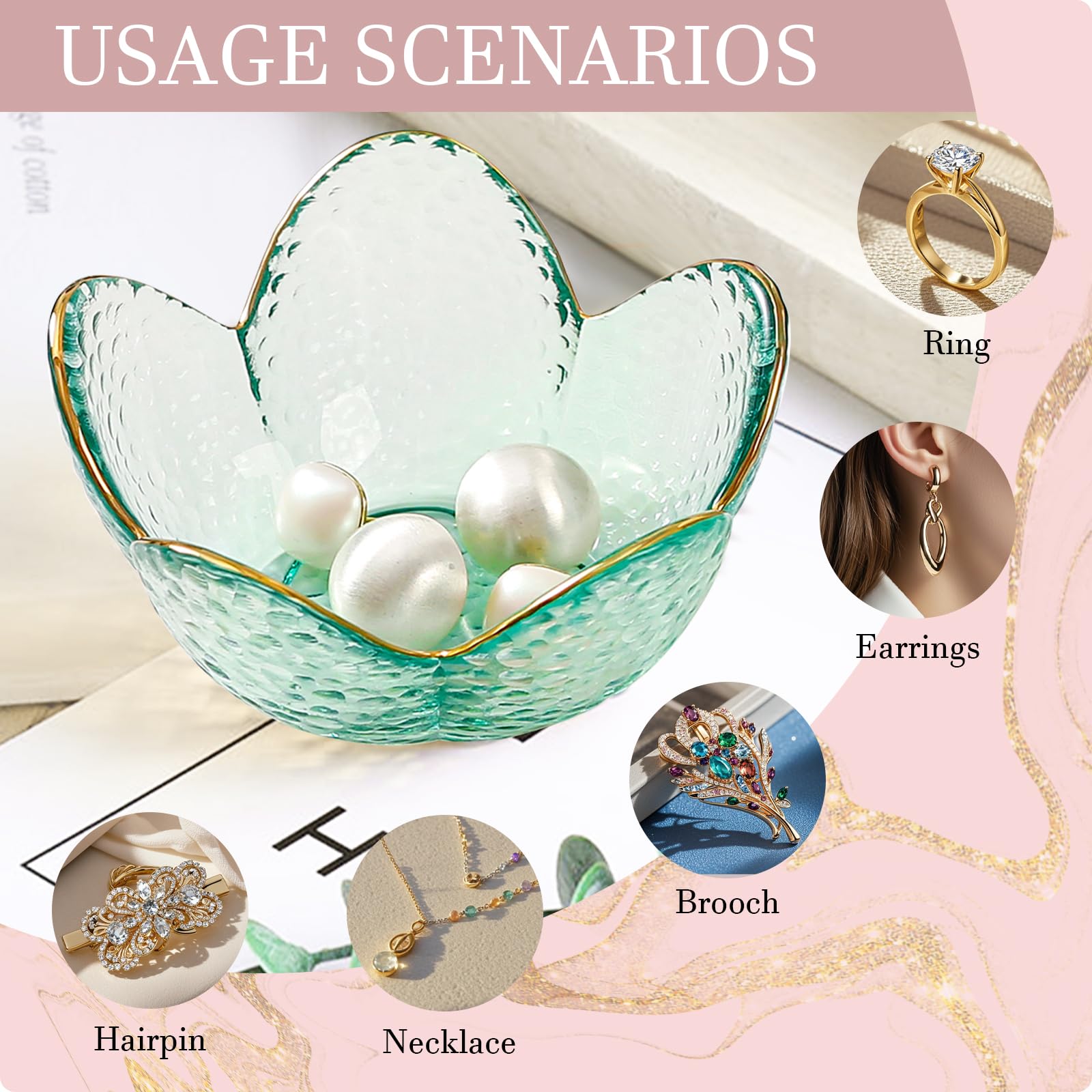 New Home Gifts For Women: In addition to jewelry, flower trinket plate can also be used to display small accessories, beads, coins, keys or other small items in an attractive way. The flower ring plate is very delicate and small, If you are struggling with a gift, this ring holder dish also as a great gift for grandma, mom, wife, daughter, women on Birthdays, Engagement, Weddings, Anniversaries, Housewarming, Thanksgiving, Christmas, Mother's Day, Valentine's Day.