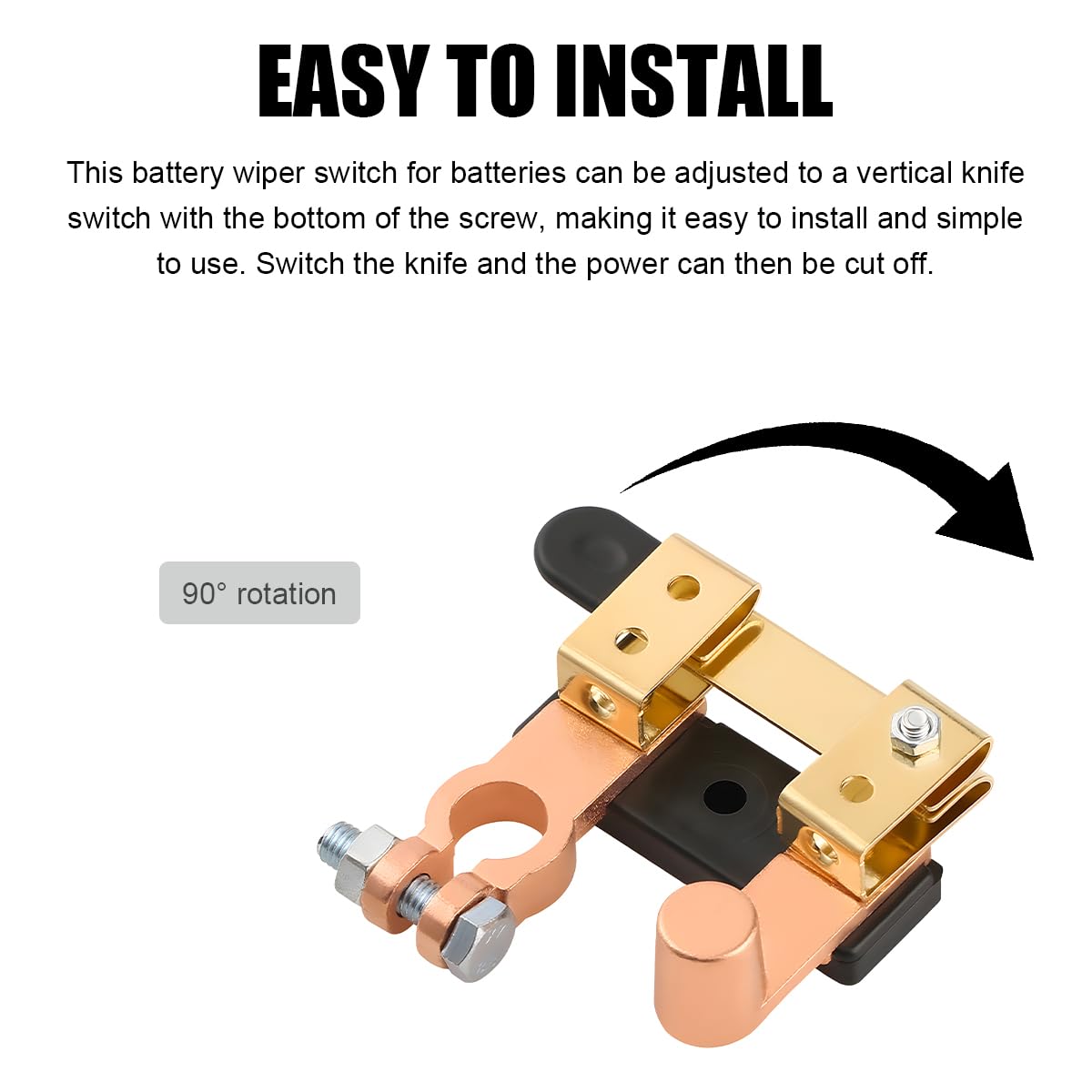 【Easy Installation】: The switch comes with clear installation instructions. First, identify the battery terminal in which the switch will be installed. Second, attach the switch to the battery post using the included screw. Third, connect the battery cable to the switch blade.