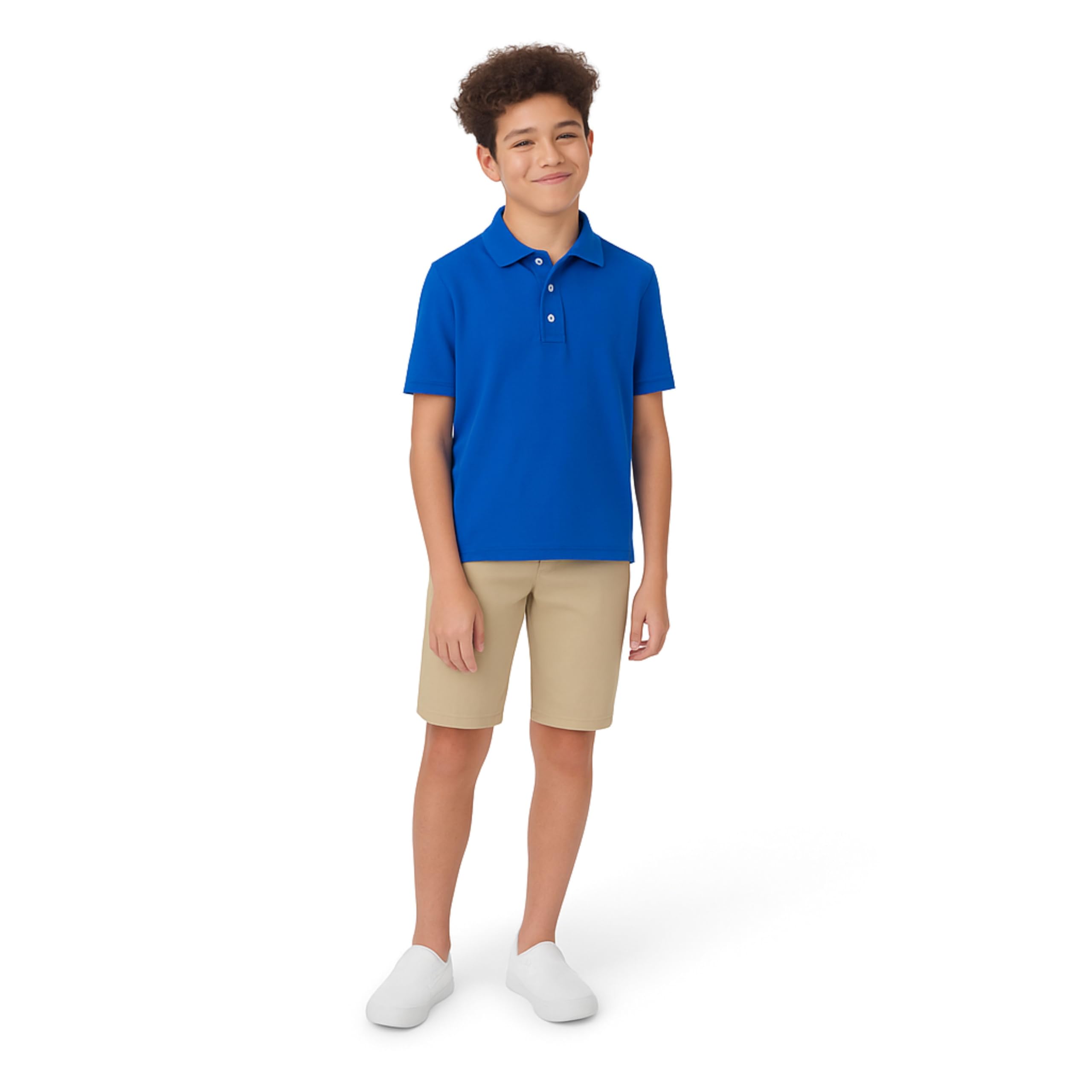 Description This short-sleeve polo is polished enough for the classroom yet comfy enough for the playground. Shrink-and fade-resistant in a breathable soft piqué knit, the wider cut ensures a more comfortable fit.