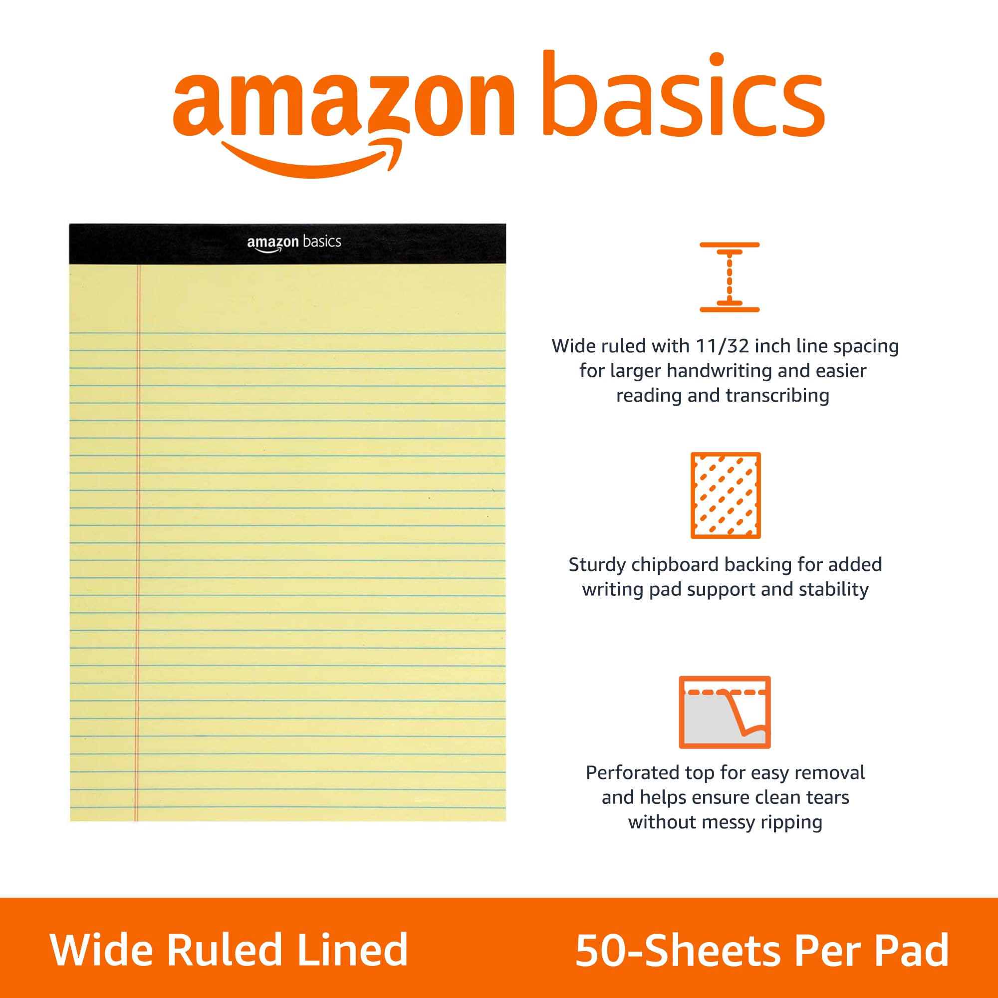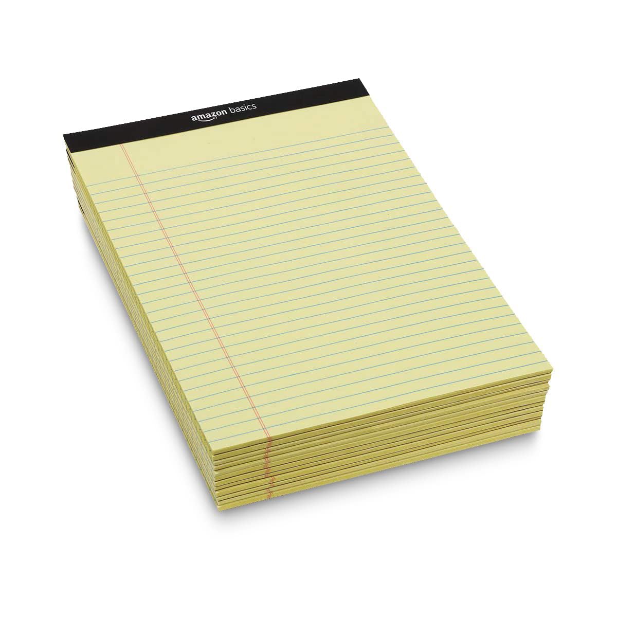 Product Description Amazon Basics Wide Ruled 8.5 x 11.75-Inch Lined Writing Note Pads - 12-Pack (50-sheet Pads), Canary From the Manufacturer Amazon Basics