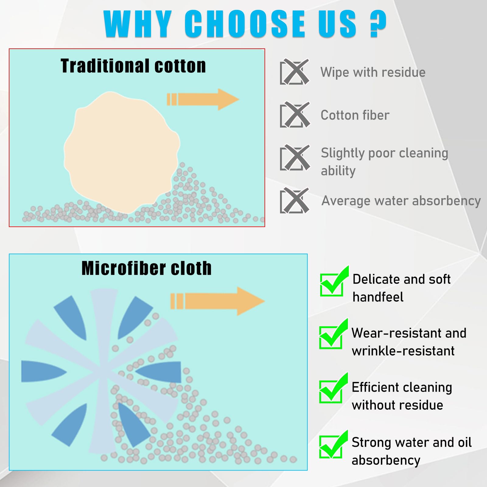 【Dual-Purpose】: This cleaning cloth is dual-purpose for both dry and wet use. The black part contains an absorbent sponge for wet wiping, which can remove oil stains, fingerprints and other stains. The gray part is used for dry wiping, which can be used to remove dust.