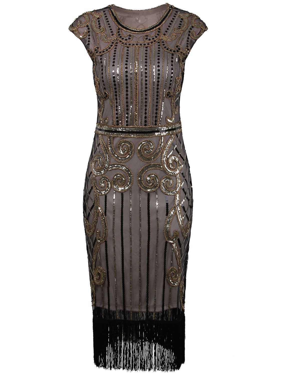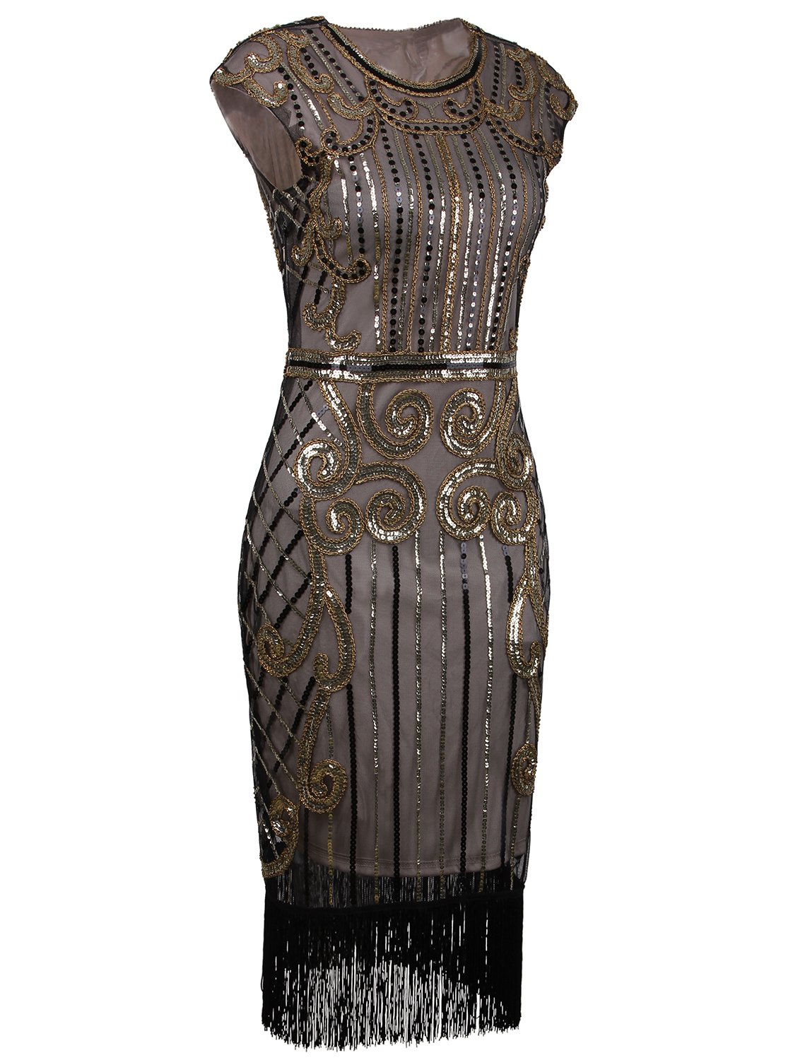 Fashion 1920s Fringed Sequin Handmade pattern. Joyful dress for special occasion
