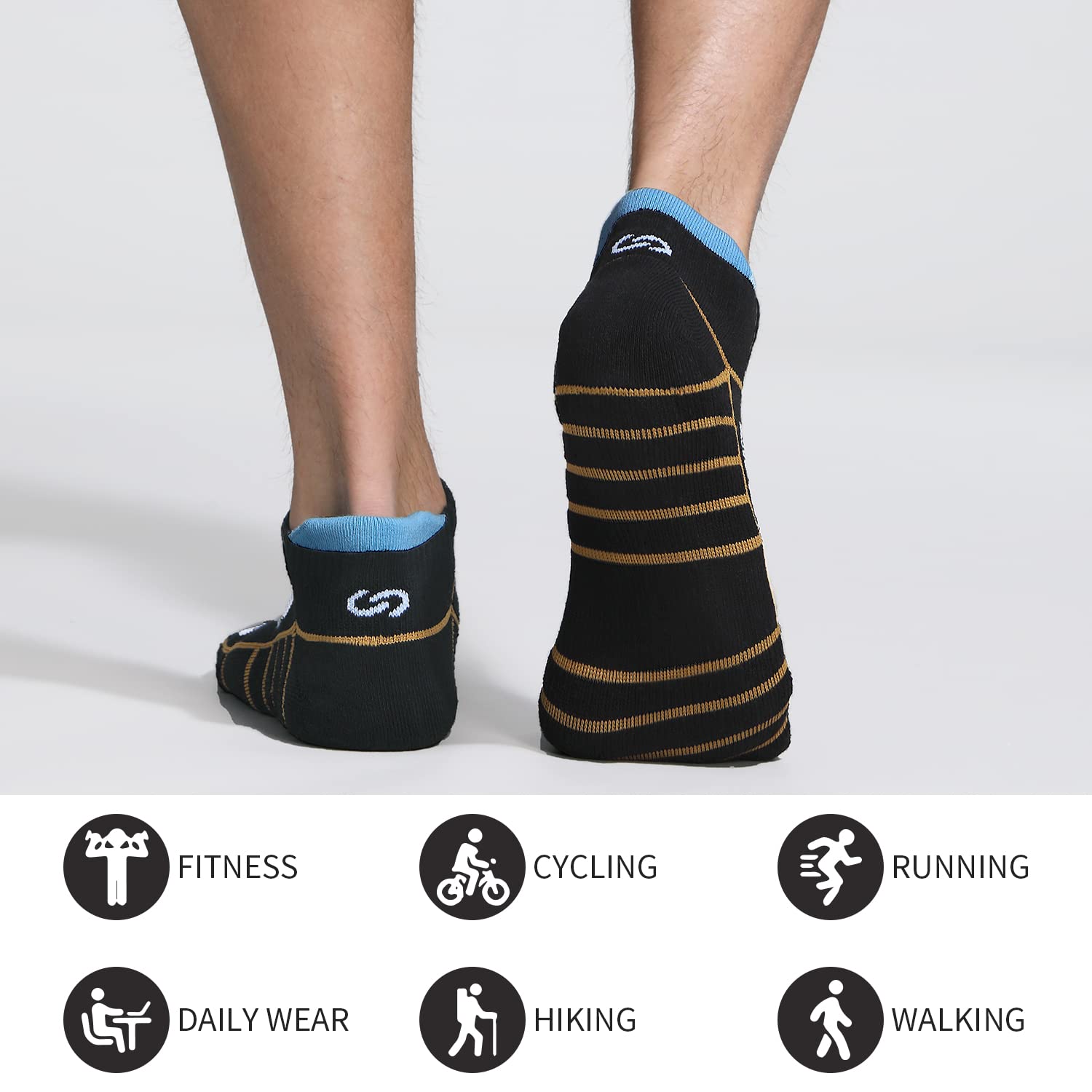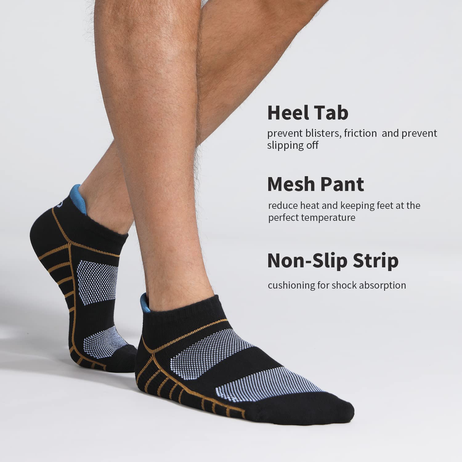 Athletic Running Ankle Socks: Foot side has a breathable mesh design, using advanced weaving technology. Absorbent and perspiratory. Keeping your feet dry and cool. Best sport socks for your running shoes, tennis shoes, or other sports shoes. Idea for hiking, walking, running, camping, mountaineering, mountaineering, backpacking, traveling, classic style socks also fit any everyday dressing for adults