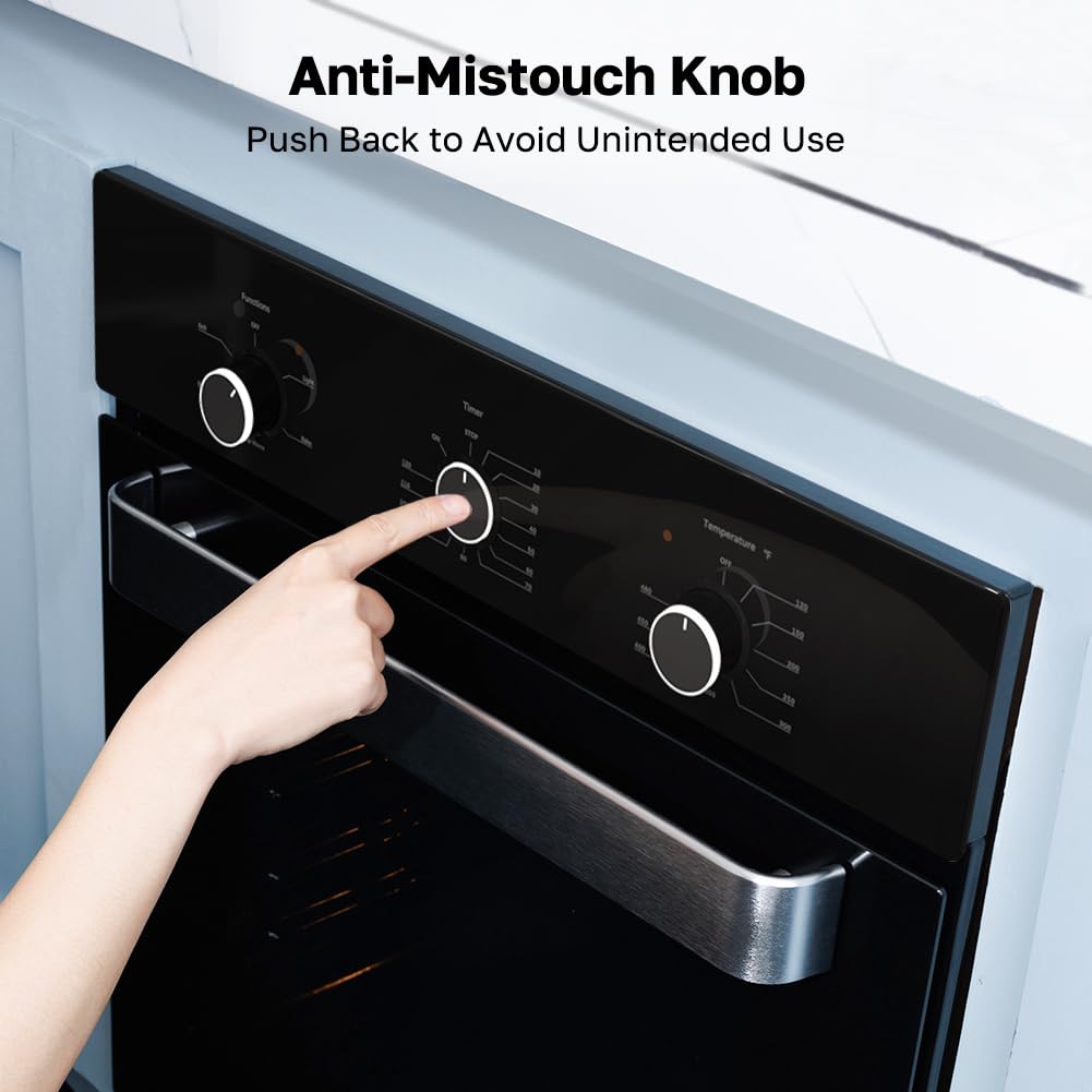 Anti-Mistouch Knob with Light Ring-The control knob can be pushed back into the oven after the operation, which can prevent accidental activation of the oven or unintentional changes to the setting. Additionally, there is a white light ring around the knob that is easy to operate at night.