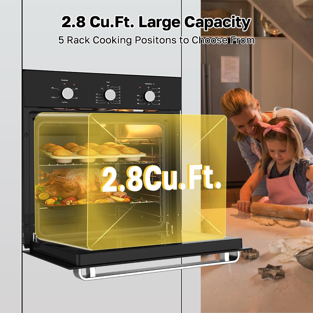 5 Working Functions-The sensor probe in the oven precisely monitors the internal temperature, offering exclusive temperature for every kind of food, the maximum temperature can be up to 480℉. The wall oven has 5 different working modes that meet a variety of requirements for Broiling, Baking, Grilling, Keeping warm.