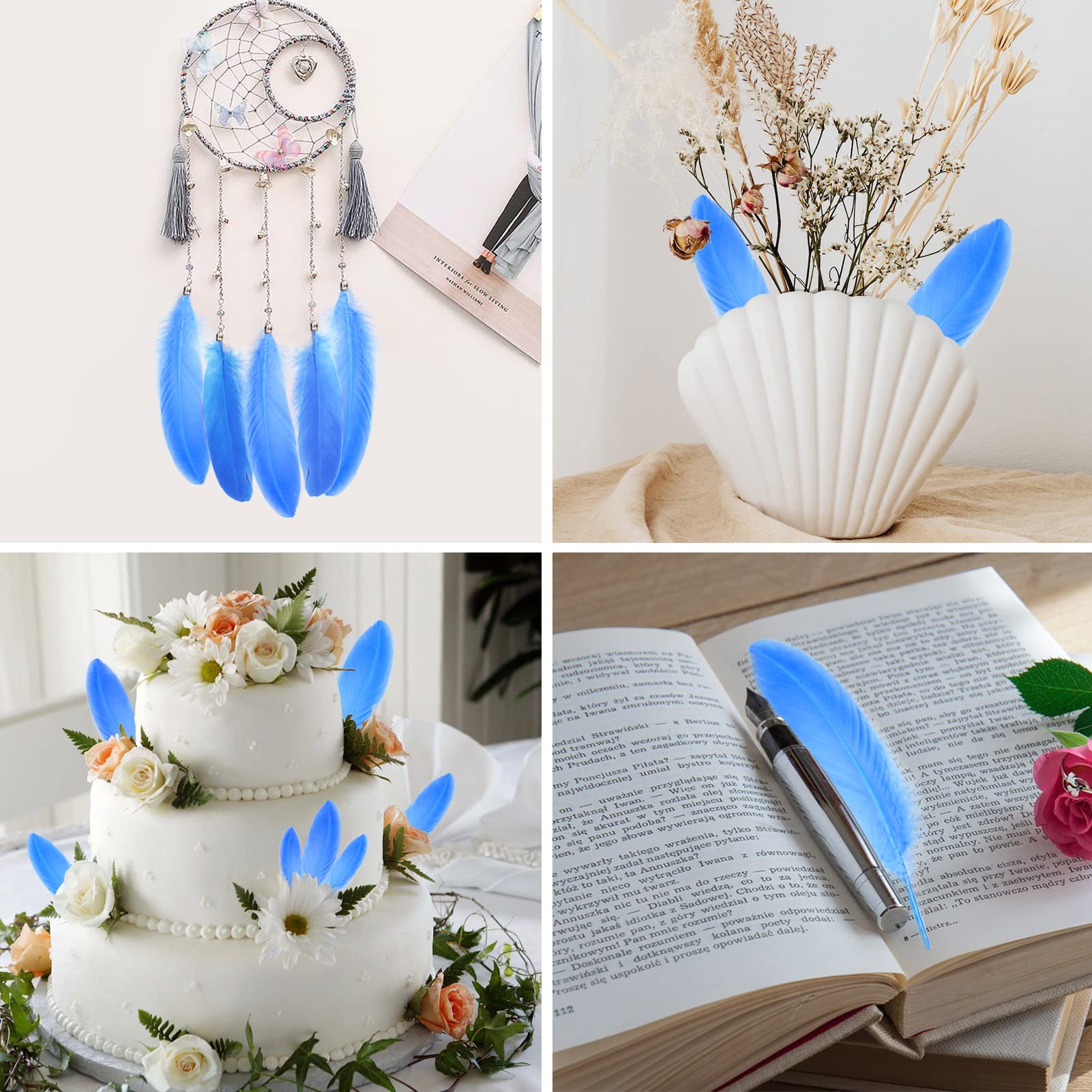 🦢 Applications: Bulk Goose feathers are perfect for wedding centerpiece, thanksgiving craft, feather garland,cake top decor ,Party,masquerade decor etc. Luxurious feathers will make your party more beauty and romantic.