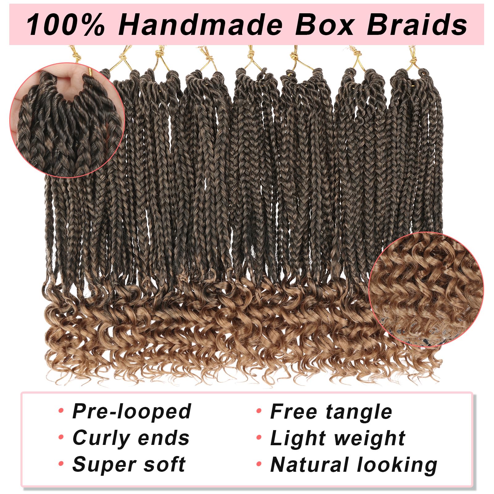Hair Features: Goddess box braids crochet hair is 100% handmade, with pre-looped design, easy to install, especially for beginners, it can save more time to make hairstyles.