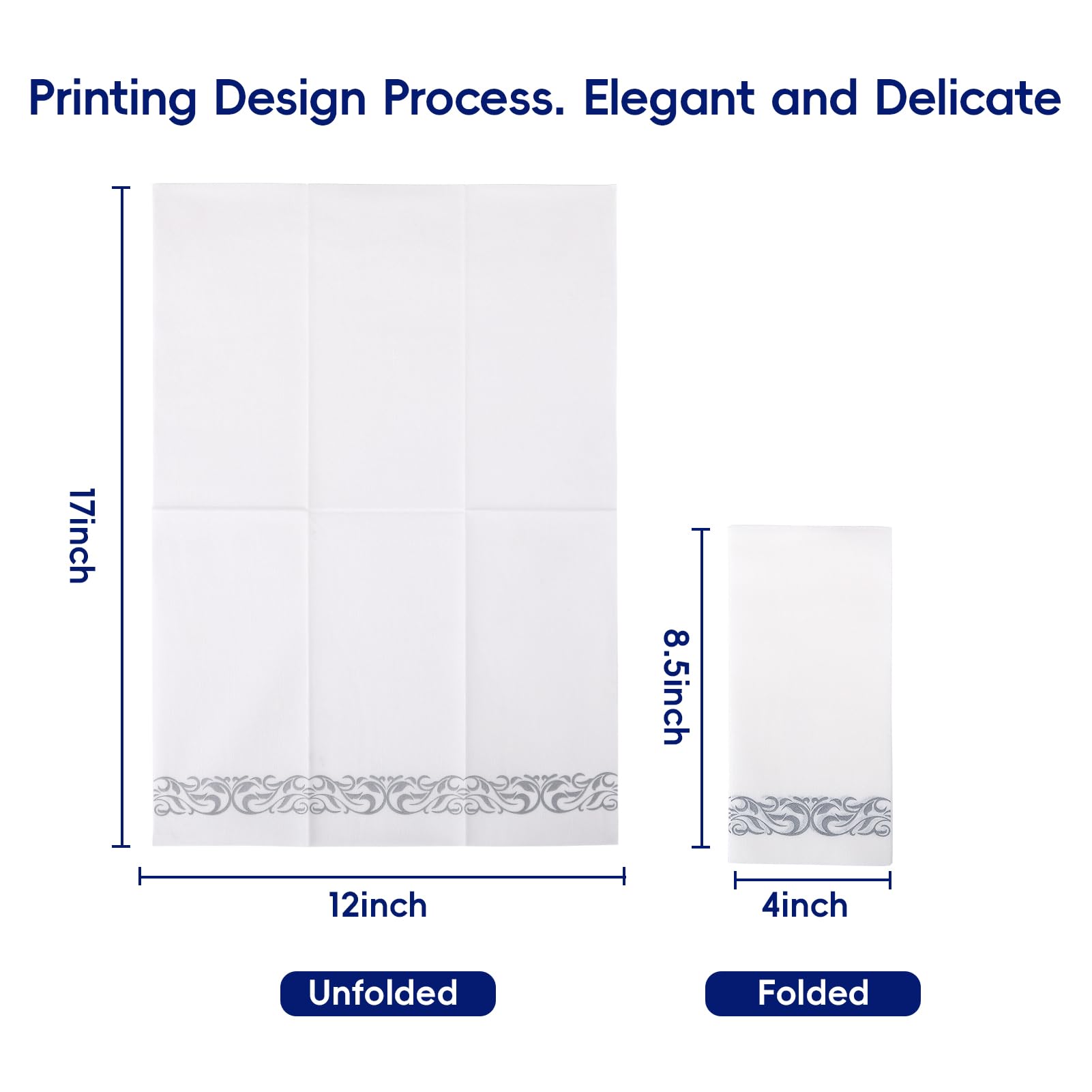 Royal Treatment: The disposable decorative napkins are printed with a delicate gold pattern, which shows your fashion sense. After unfolding, a side of the print is displayed in front of the eyes, which is more delicate than the ordinary one. Add sophistication to any formal occasion such as a wedding reception or anniversary party!