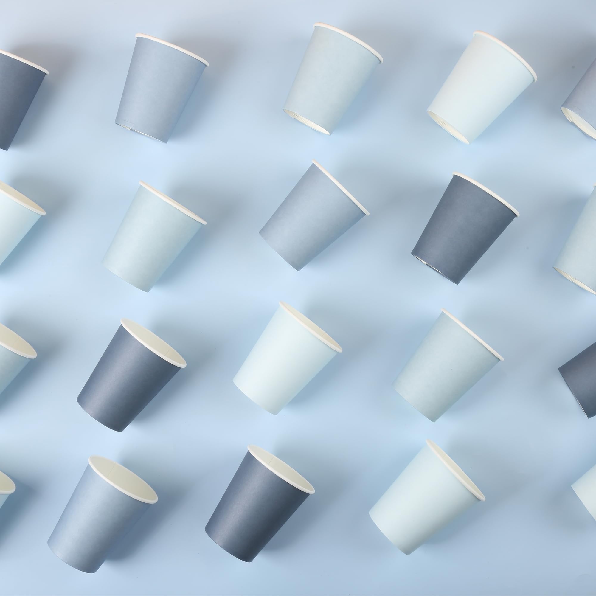 100Pcs disposable blue paper cups 9oz for wedding, birthday, baby shower, and more Use these gradient blue paper cups for coffee, juice, beverages, DIY ice cream, or even as food and snack holders whether it's dinner, lunch, parties, barbecues, or gatherings, these cups are a great choice Specifications: Materials: paper Size: 9.0 x 7.5 x 5.3cm Color: dusty blue Package includes: 100 x paper cups Notes: Manual measurement, these may vary in sizes slightly The color may exist a slight difference due to different screen displays