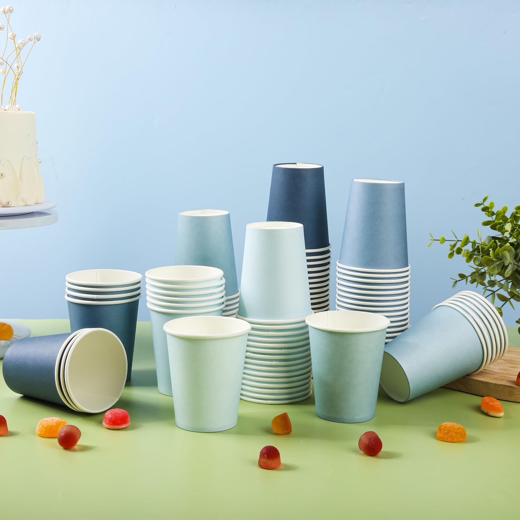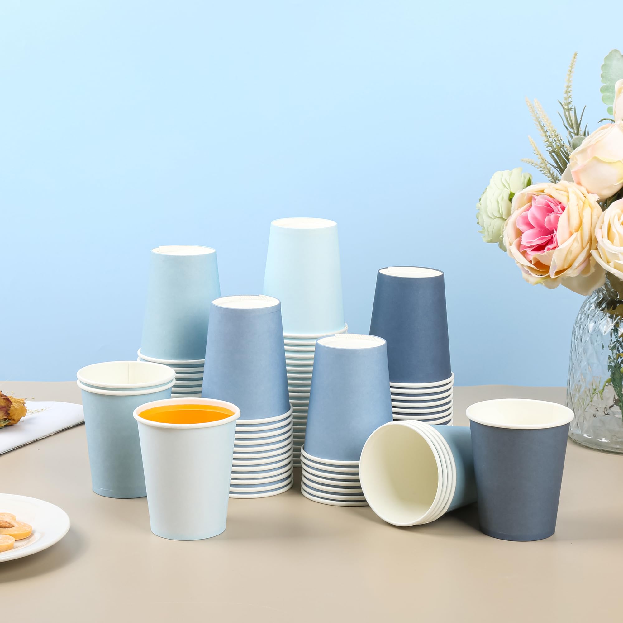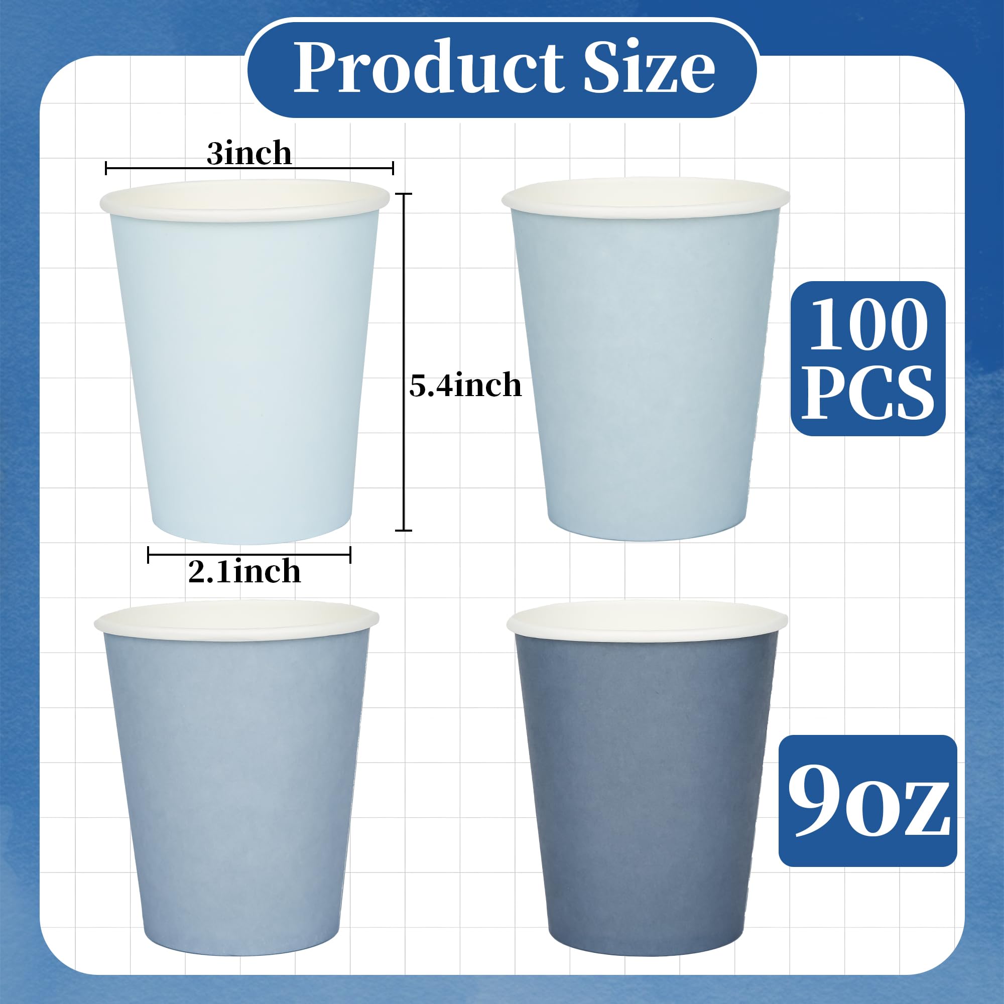 AimFun 100 Pcs Dusty Blue Paper Cups 9oz Gradient Blue Party Cups 4 Colors Disposable Beverage Coffee Tea Drinking Cups for Birthday Baby Shower Bluey Party Supplies