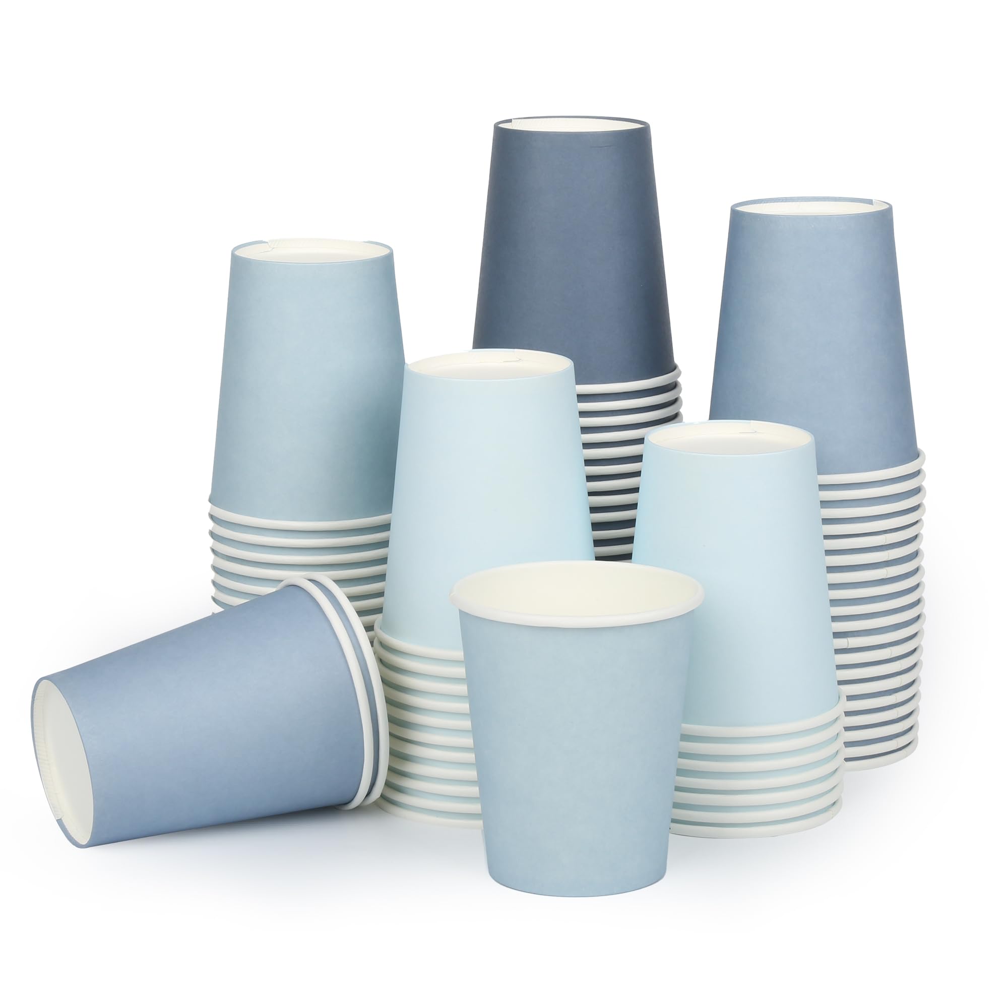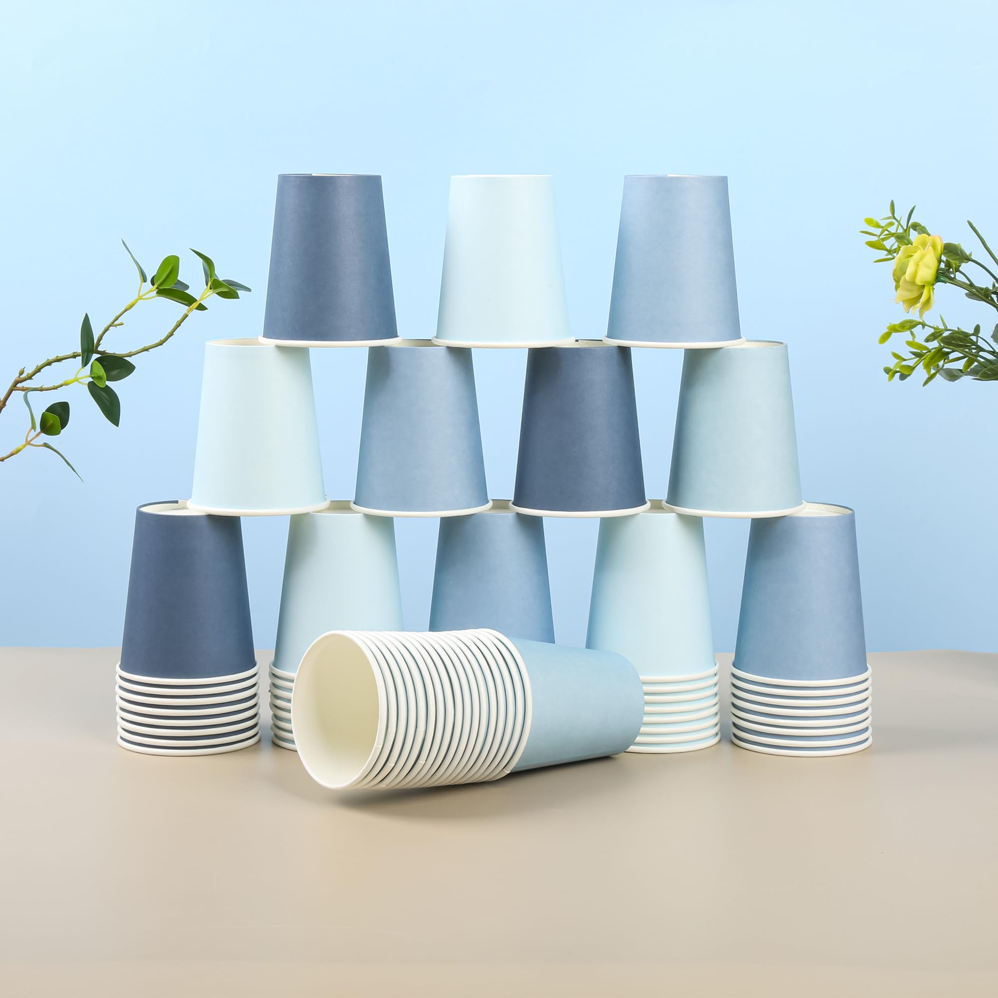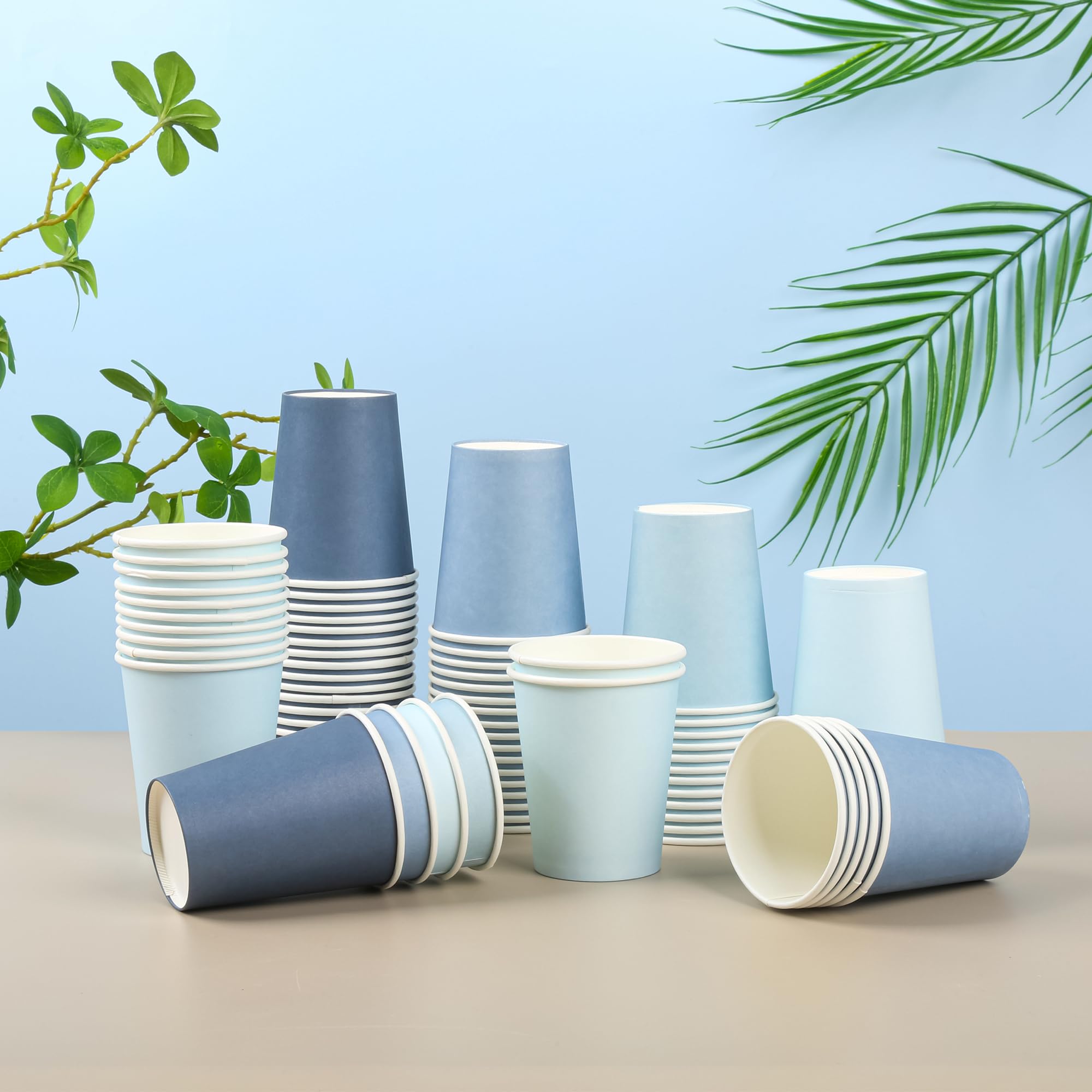 AimFun 100 Pcs Dusty Blue Paper Cups 9oz Gradient Blue Party Cups 4 Colors Disposable Beverage Coffee Tea Drinking Cups for Birthday Baby Shower Bluey Party Supplies