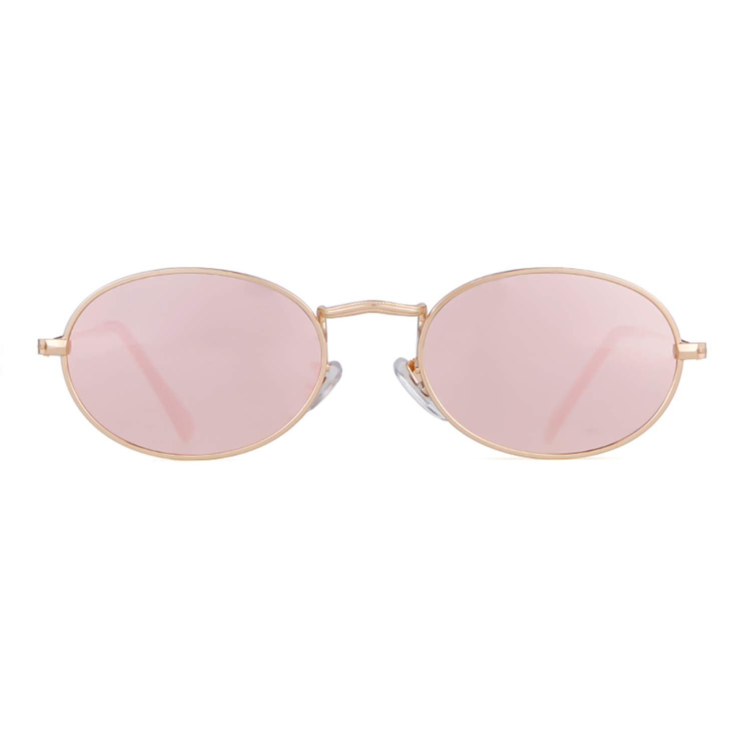 Chic Small Oval Sunglasses Made of Thin Metal Frames Make This Sunglasses Light Weight and Flat,Adjustable Nose Pads Suits for Most Man and Woman Face