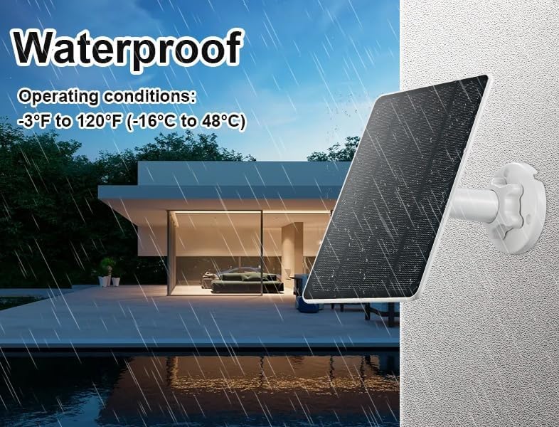 360°adjustable mount allows outdoor camera solar panel to capture the different season sunlight and get maximum sunlight. 7.5*6.4 inch large solar panel meet the daily electricity demand of Doorbell.