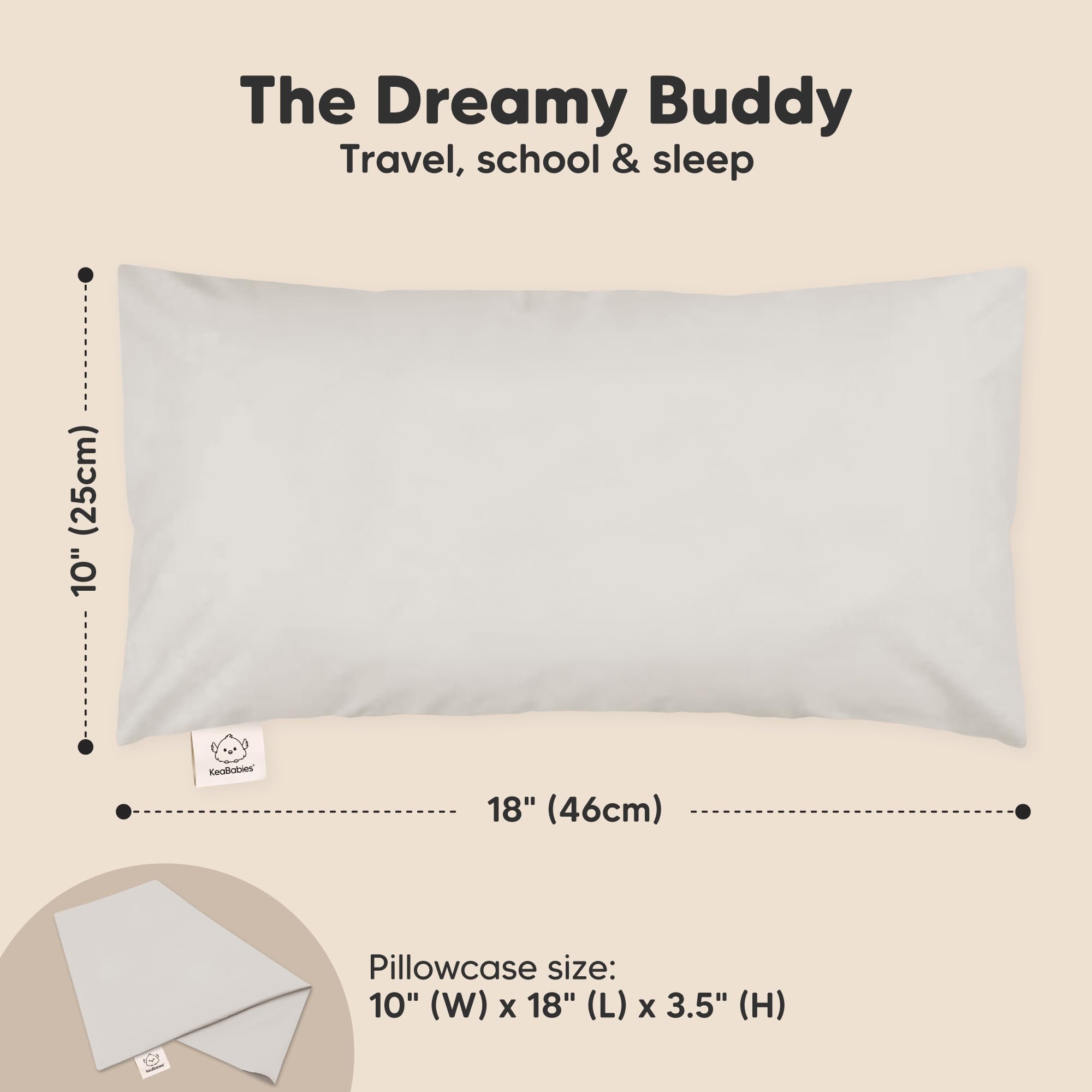 Introducing the Buddy Toddler Pillow - A spin-off from the wildly popular KeaBabies My Little Dreamy Toddler Pillow. This 10”x18" small pillow is ergonomically crafted for sleep, play, and travel, and is sure to become your child's new favorite pillow.
