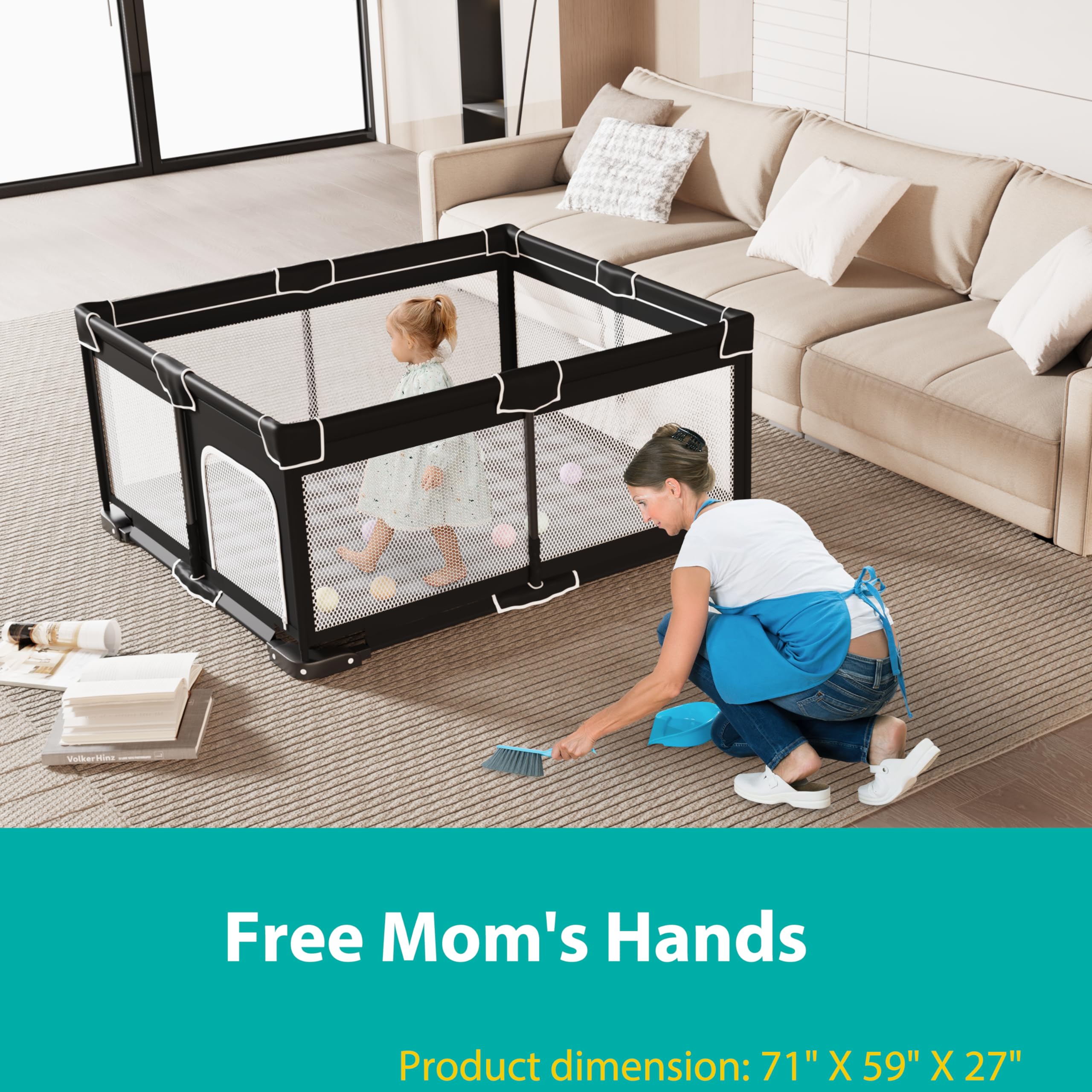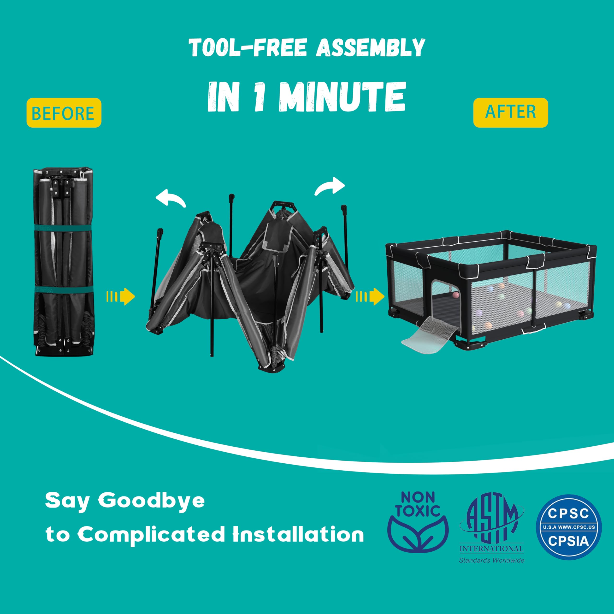 Easy to Assemble: Unlike other playpens, our baby playpen foldable has been upgraded for effortless assembly and disassembly, requiring no tools at all. You can complete the setup in just 1 to 3 minutes by yourself