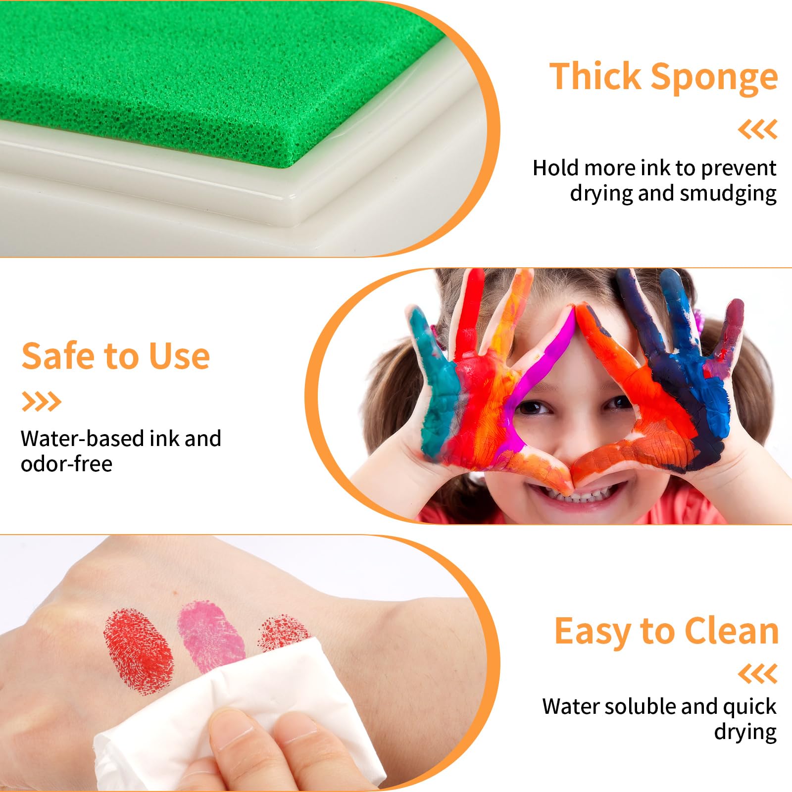 Safe to Use: Made of premium water-based ink and soft sponge, non-toxic, odor-free and washable, suitable for home and school craft activities