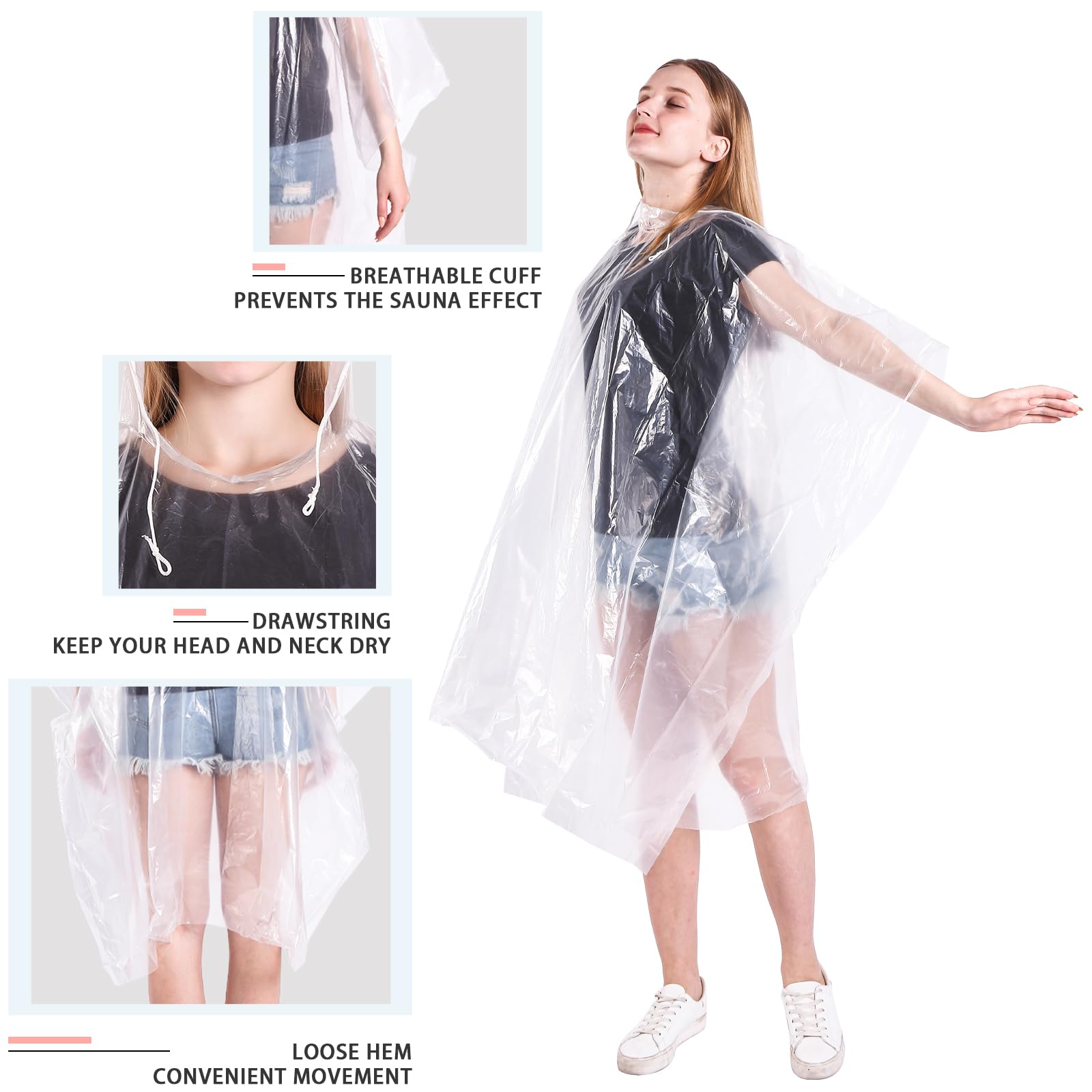 ENJOY YOUR ADVENTURES WITHOUT WORRYING THAT THE RAIN WILL START - Our disposable emergency raincoats are great when you pack light and you don't want to carry. Whether you're heading to a theme park, outdoor concert, school event, or any other outdoor activity where rain may strike, our versatile range of rain protection has got you covered. Don't let unpredictable weather dampen your plans - explore our collection today!