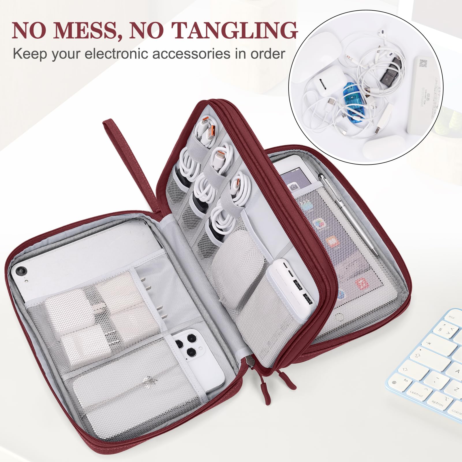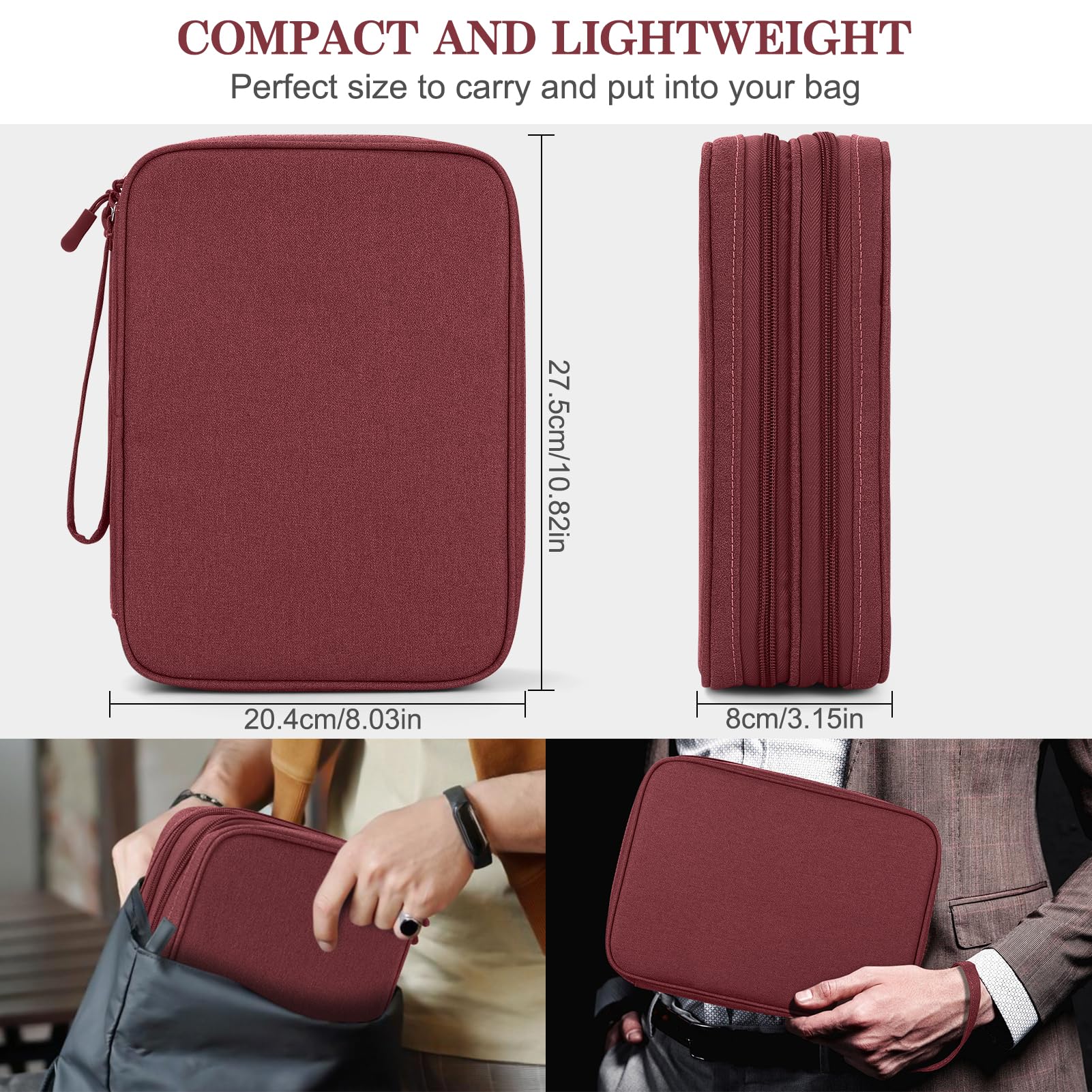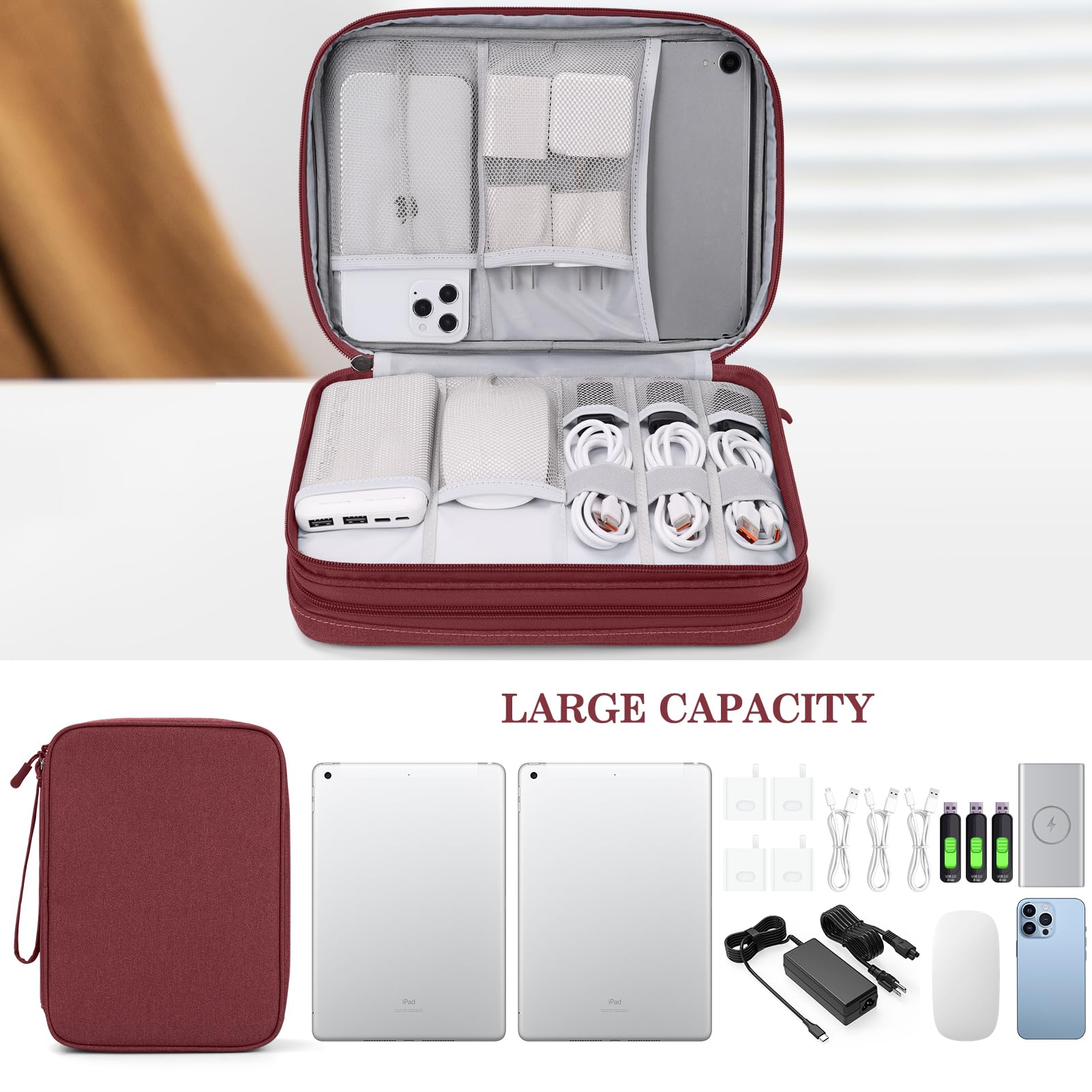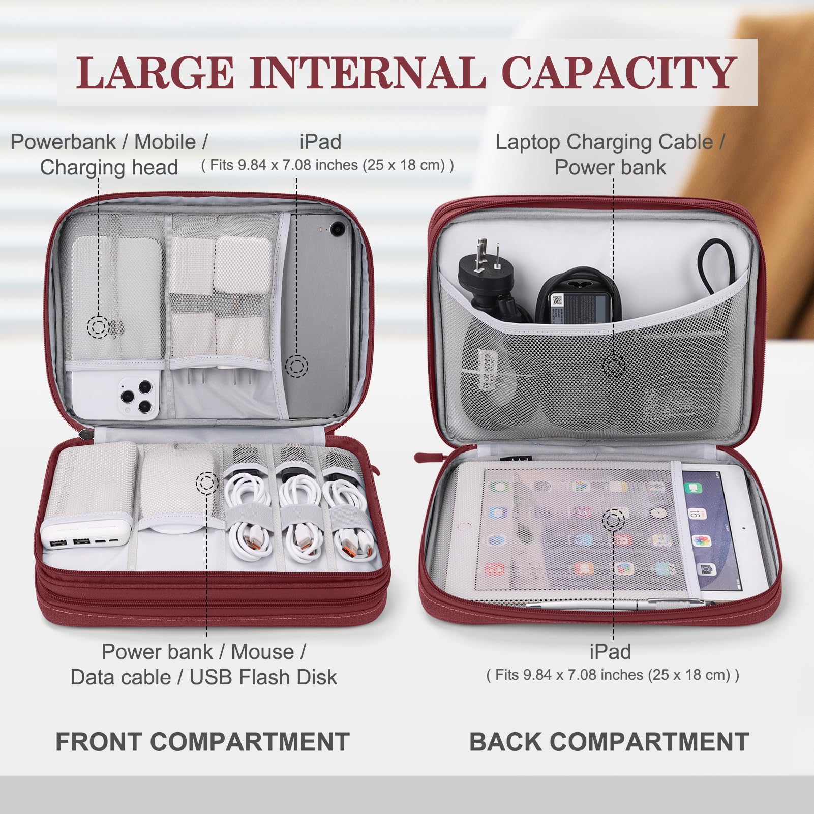 Extra Large Size: 10.8"x8"x3.15" dimension perfectly fits iPad up to 9.84x7.08in with double-layer design and 13 compartments, stores iPad, power bank, laptop charger, cables, USB drives, phone, mouse & more for no more tangled cords!