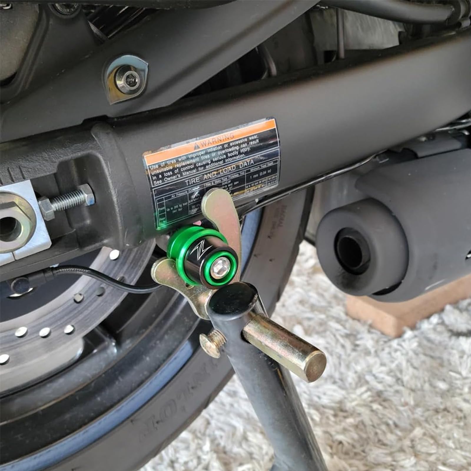 【Excellent Performance】The swing arm spool screw used with the swing arm can easily move the motorcycle up and down to avoid damaging the main body of the motorcycle when parking or repairing. Our swing arm spool is equipped with black gasket, which is used to increase the stress area, so as to reduce the damage to the motorcycle body.