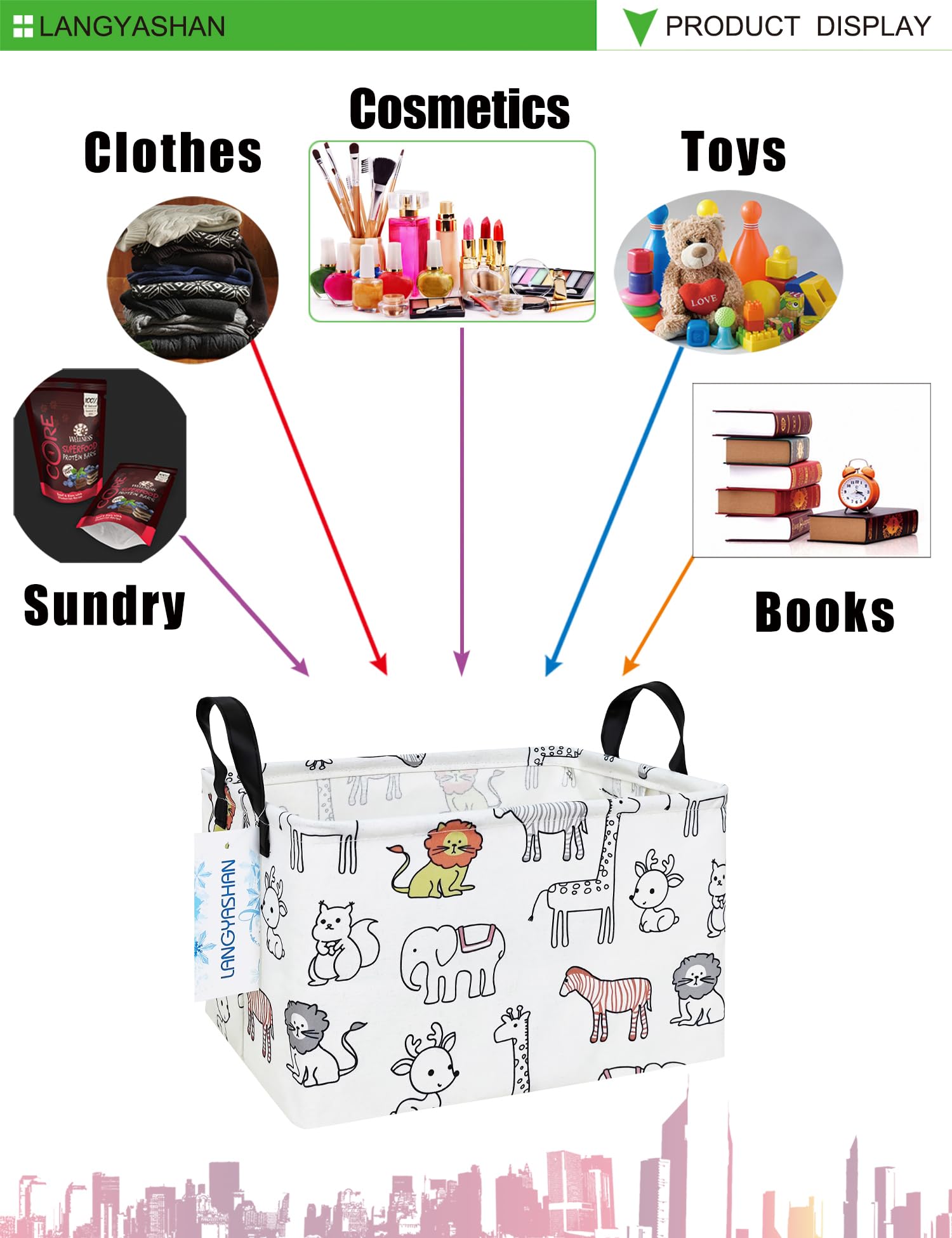Material: Polyester canvas linen and PE environmental protection waterproof coating. This storage basket easy to stand and foldable, Waterproof PE coating inner, which to achieve the effect of moisture resistant.