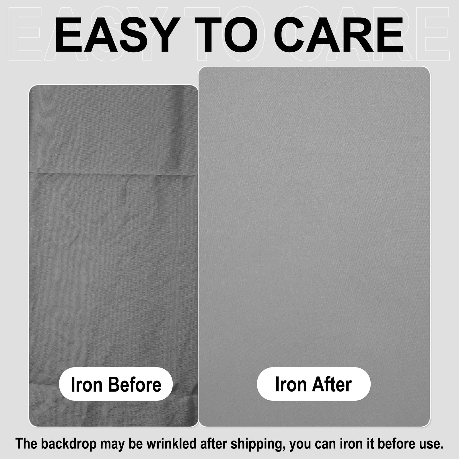 This backdrop is cleaned easily, using warm water and a gentle detergent, that help the backdrop remain looking like new. If necessary, pls iron the surface with steam iron but not dry iron.