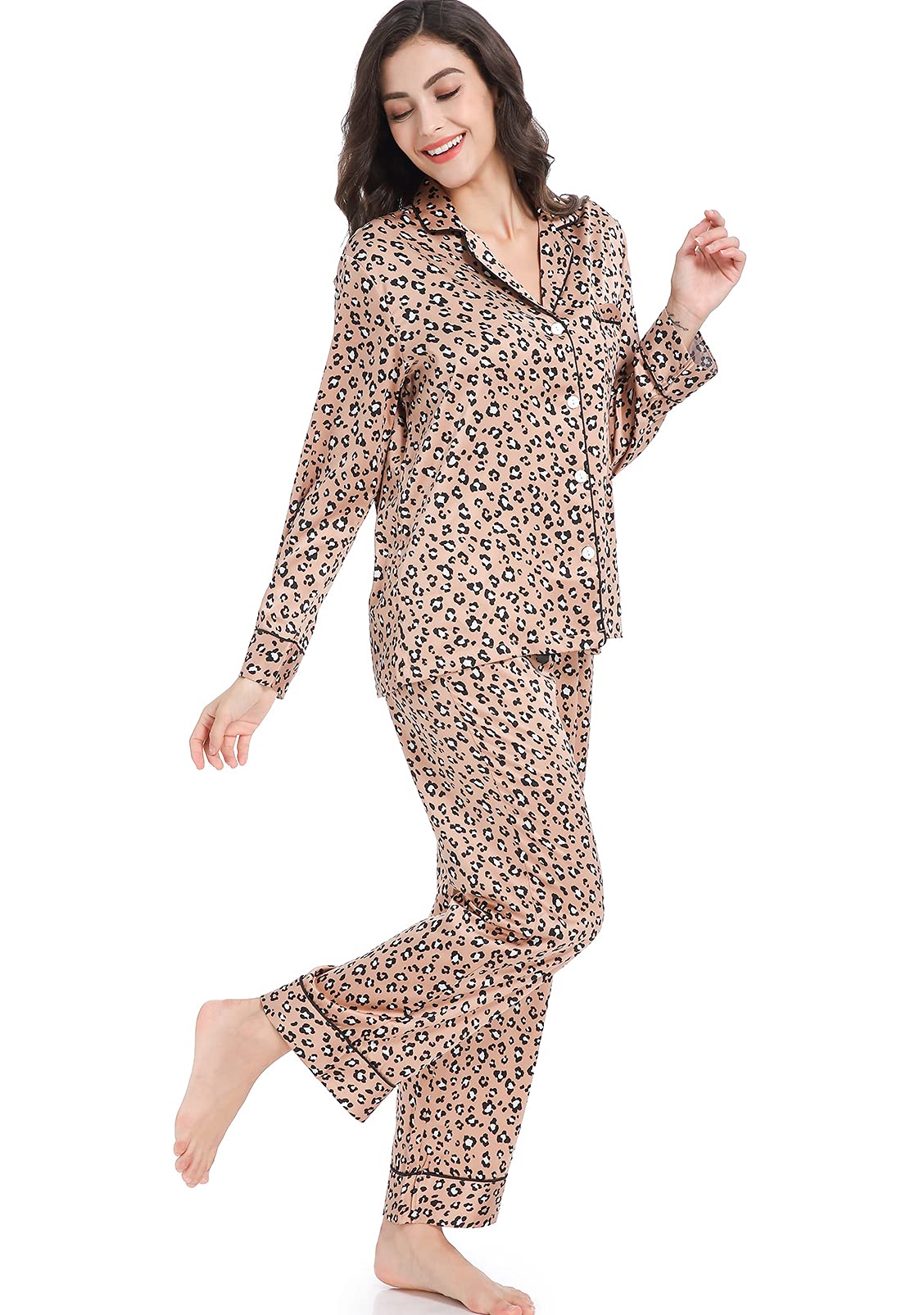 COMFORTABLE FABRIC: Made of high quality silk-like satin fabric, this pajama set is soft and lightweight, perfect for sleeping, lounging, or daily casual wear.