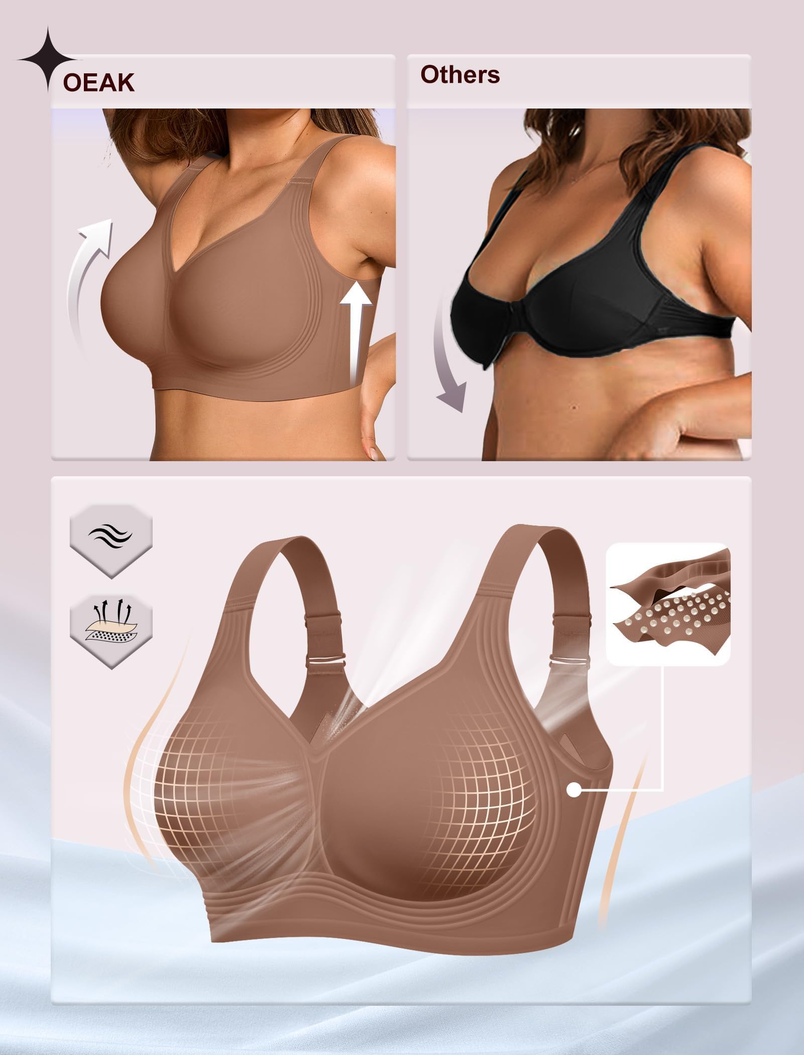 Seamless Tshirt Bras - OEAK Full Support Bras for women are perfect for work, lounging, dating, party, dancing or light activities-all day long. They can be worn under any clothing and serve as everyday bras, t-shirt bras, sleep bras, yoga bras, light sports bras, and pregnancy bras. Simply place the bra in a laundry bag before washing to retain its shape and elasticity. With proper care, it will stay as good as new for longer.