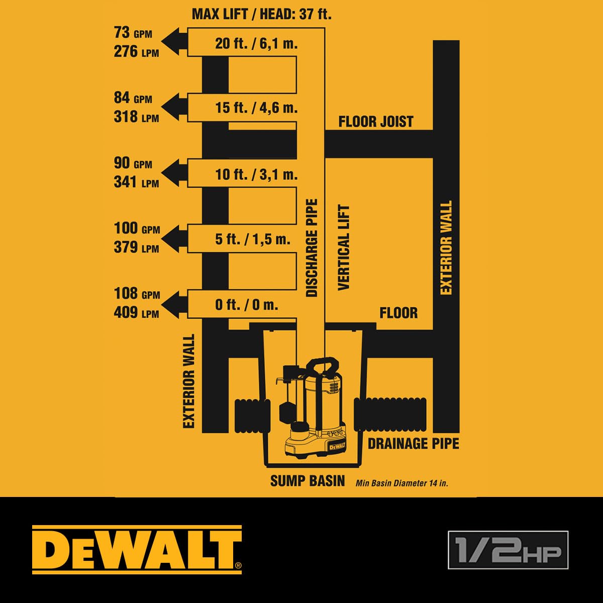 DEWALT DXWP62583 1/2-HP Stainless Steel/Cast Iron Submersible Automatic Sump Pump - Vertical Float