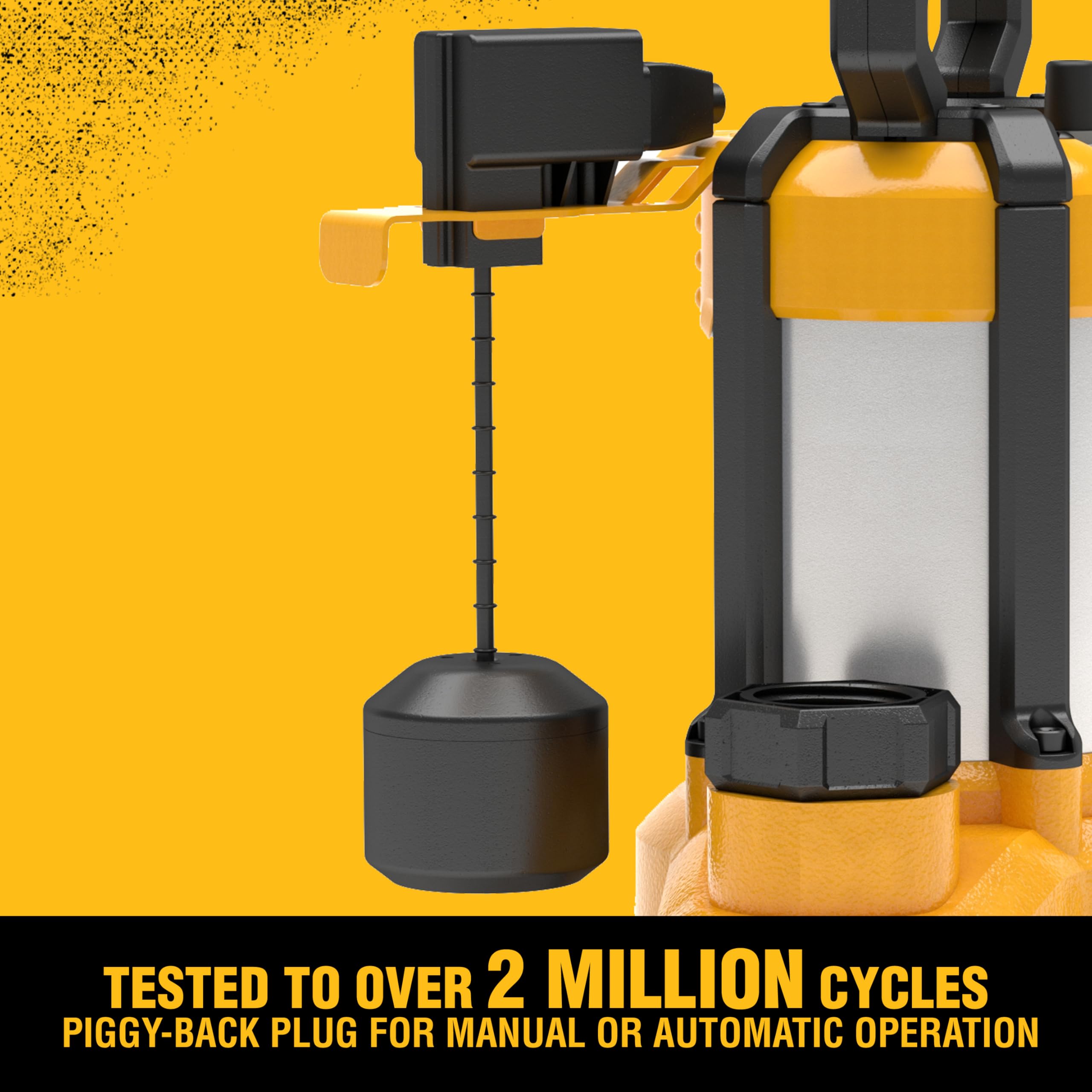 FEATURES: Vertical float switch with piggy-back plug tested to over 3 million on/off cycles