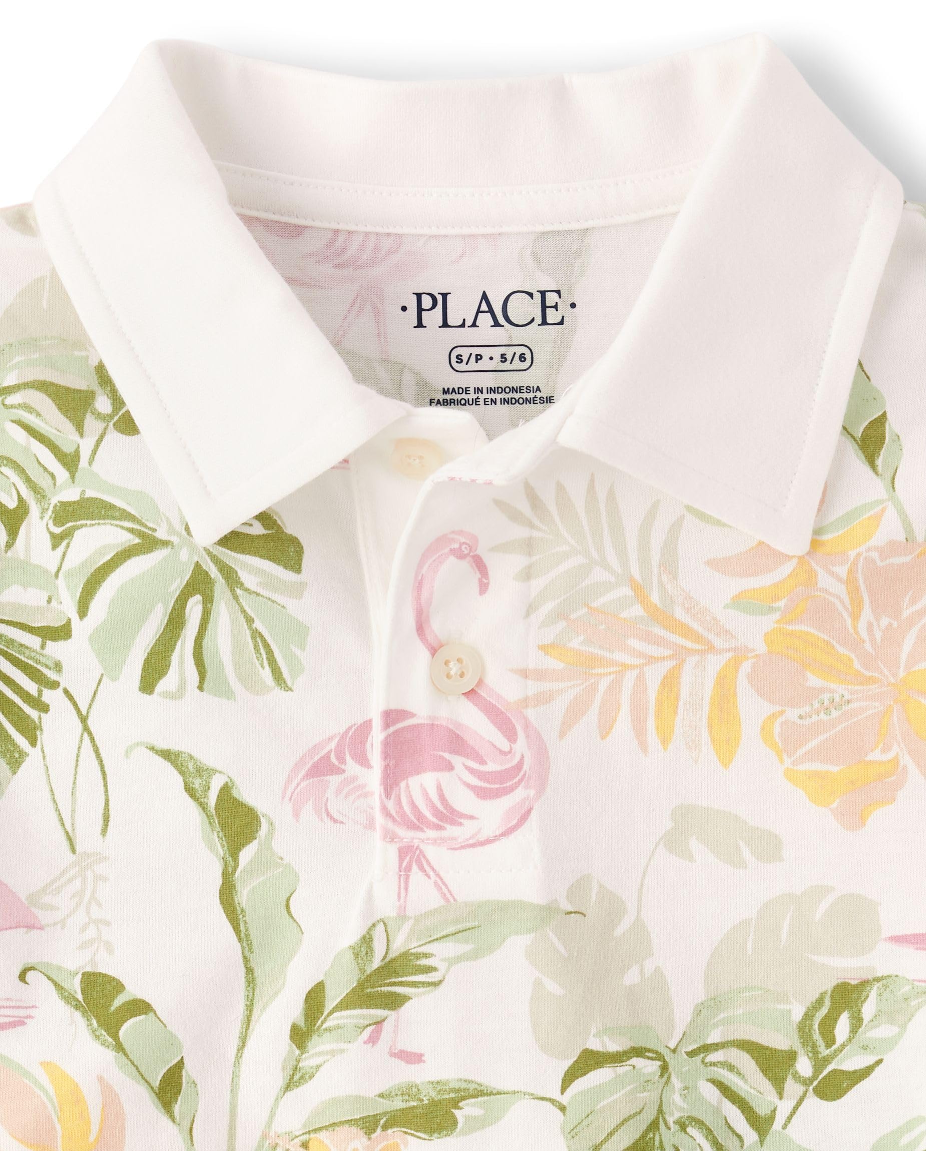 FEATURES: Half-button placket, tropical print, fabric finished for added softness & to reduce shrinkage